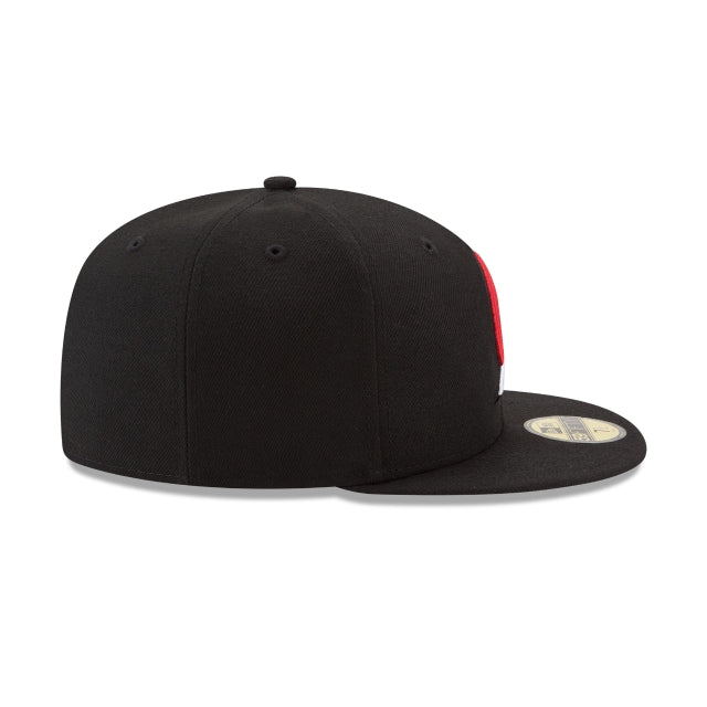 The Portland Trailblazers Team Color 59FIFTY Fitted Cap features an embroidered Trailblazers logo at the front panels and an embroidered NBA Logo at the rear.