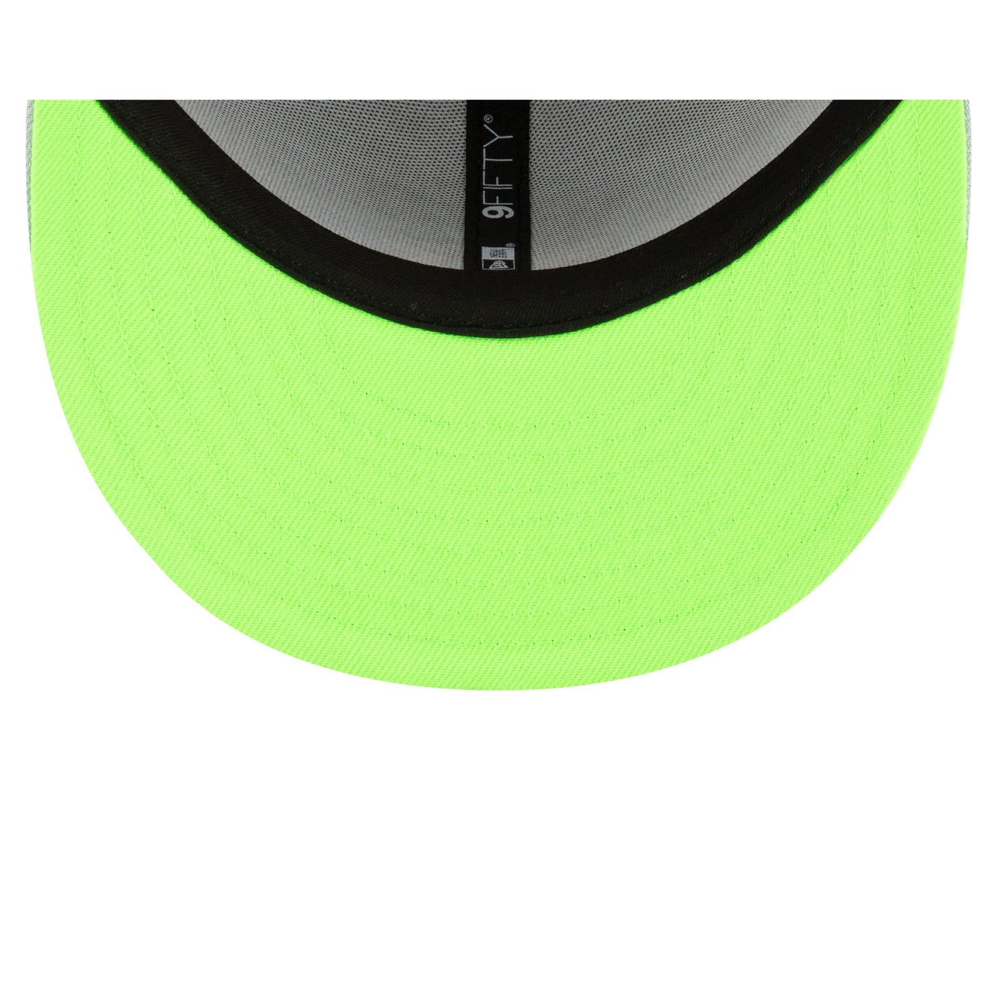 The Powerpuff Girls 25th Anniversary Neon features an embroidered Powerpuff Girls 25th Anniversary logo a the front panels with a Buttercup patch at the right-wear side. Additional details include a neon green crown button, neon green undervisor, and neon green snapback closure at the rear.