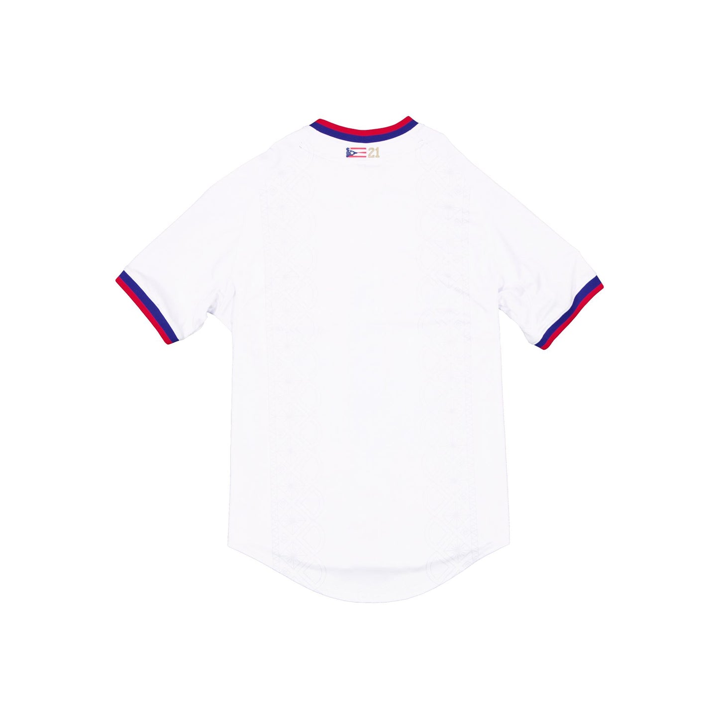 The Home White Jersey features an embroidered PR applique at the chest with a New Era Official Merchandise patch at the front and a matching team logo at the right-wear sleeve.