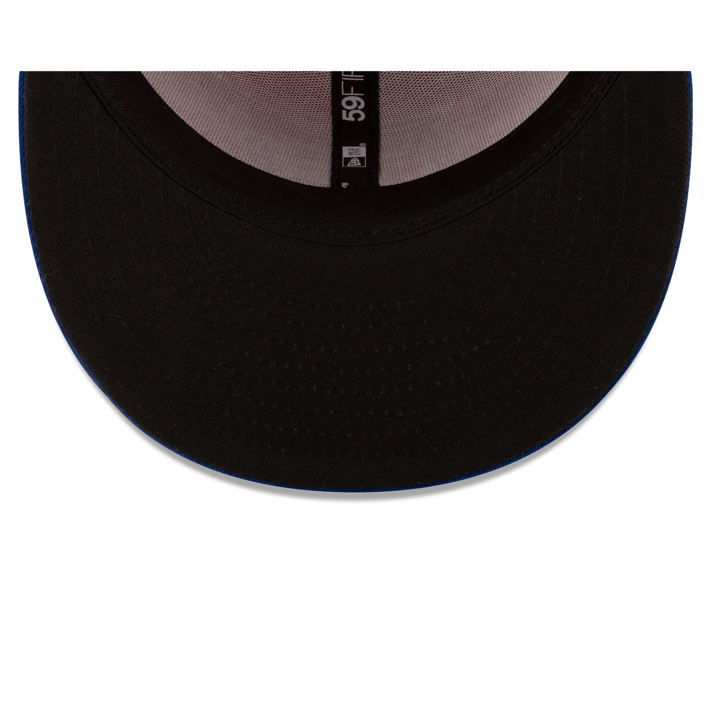 The Puerto Rico Red 59FIFTY Fitted features an embroidered PR logo at the front panels with a matching FBPR logo at the rear and a black undervisor.