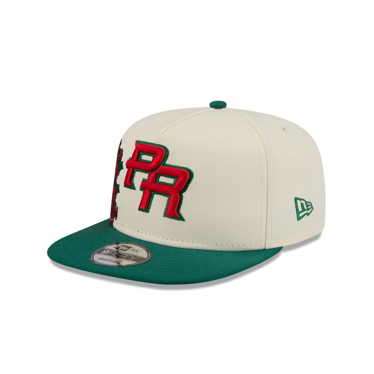 The Puerto Rico Red Flower 9FIFTY A-Frame Snapback features an embroidered PR logo on the front panels, complemented by a red Flor de Maga (Thespesia grandiflora) embroidered on the right side. As Puerto Rico’s national flower, the Flor de Maga represents vibrant cultural identity, resilience, and beauty. The cap has an adjustable snapback closure at the rear and a gray undervisor.