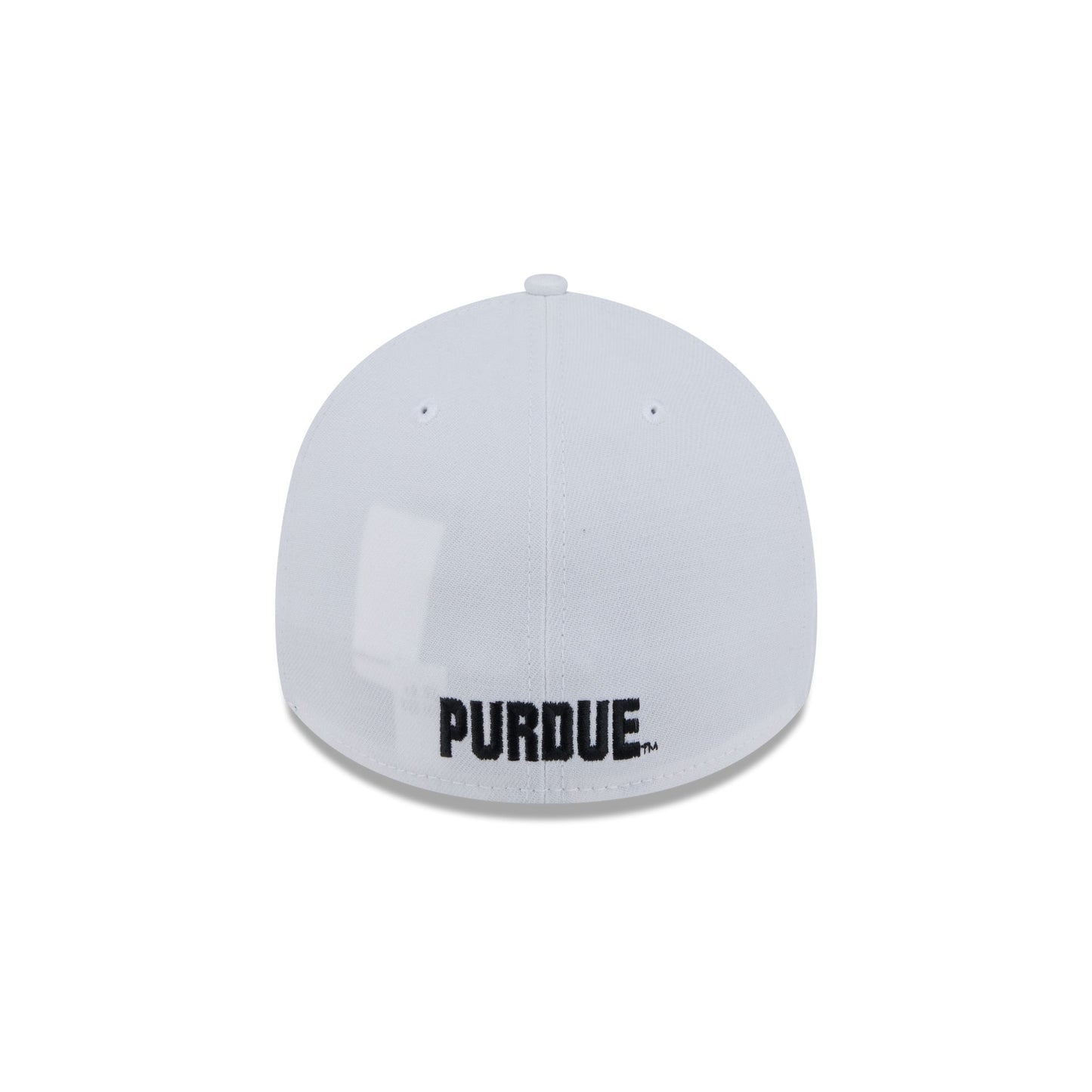 The Purdue Boilermakers Optic White 39THIRTY Stretch Fit features an embroidered Boilermakers logo at the front panels with a team wordmark at the rear.