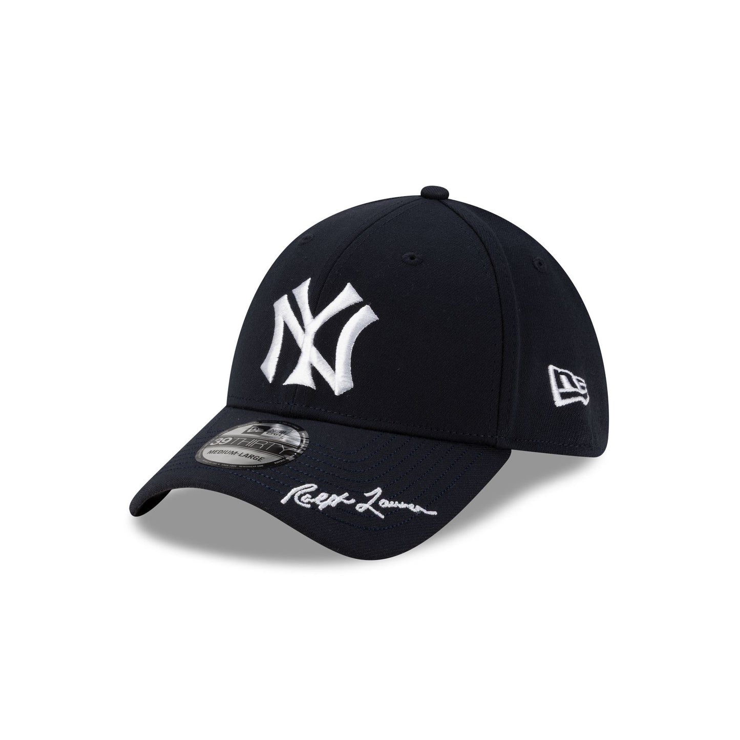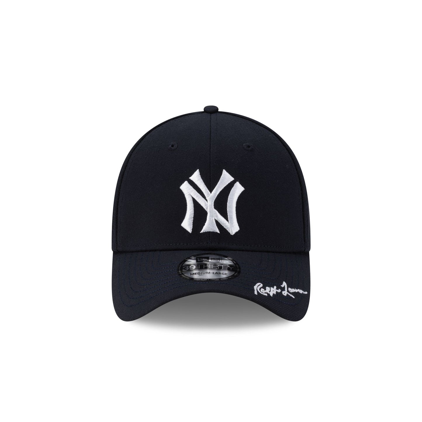 The Ralph Lauren x New York Yankees Navy 39THIRTY Stretch Fit Cap features an embroidered Yankees Cooperstown logo at the front panels with a Ralph Lauren signature at the visor and a matching team wordmark above a Polo logo at the rear.