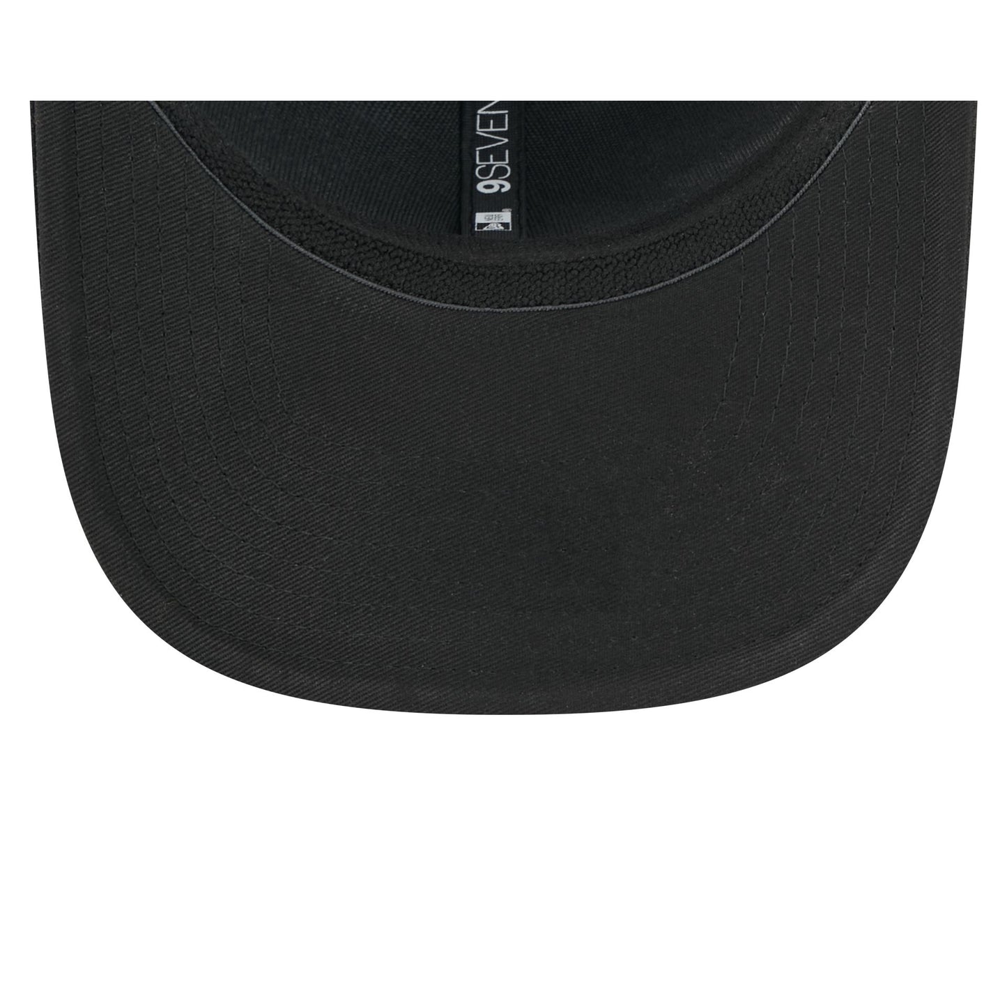 The RangeGoats GC Black 9SEVENTY Trucker features an embroidered RangeGoats GC circle logo at the front panels with a an adjustable stretch-snap closure at a mesh rear.