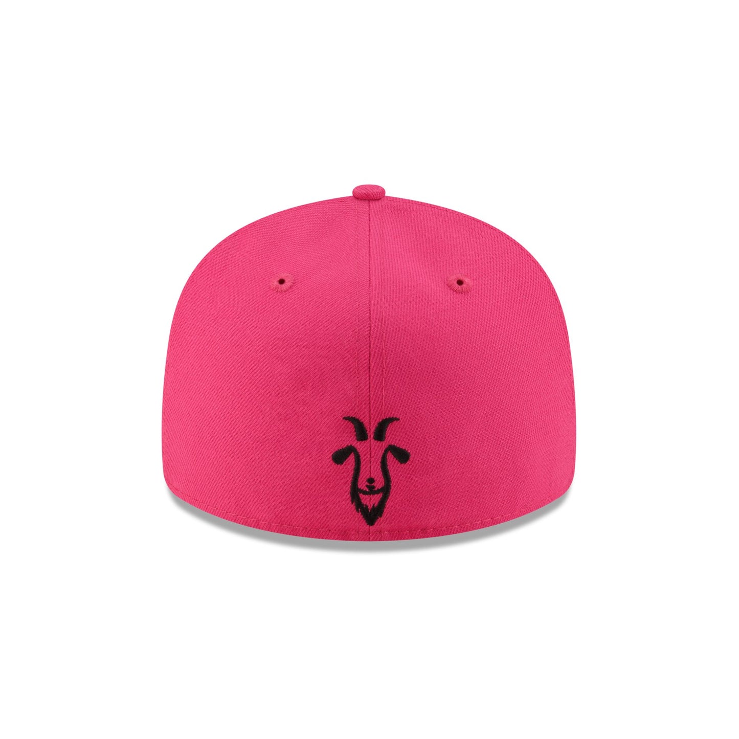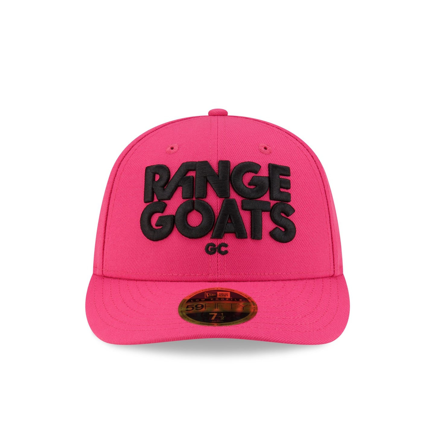 The RangeGoats GC Low Profile 59FIFTY Fitted Cap features an embroidered RangeGoats GC wordmark at the front panels with a matching team logo at the rear and a LIV Golf logo at the right-wear side.