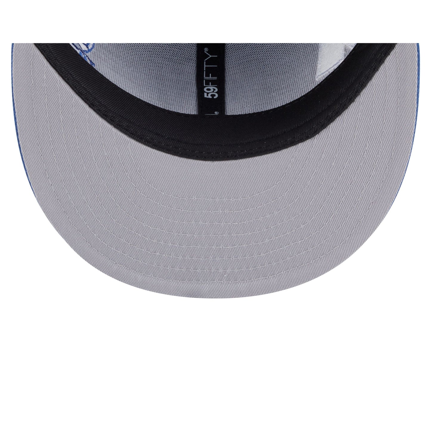 The Rayados Indigo 59FIFTY Fitted Cap features the Rayados primary logo embroidered at the front panels with alternate team logos throughout the crown, a team wordmark at the rear, and a gray undervisor.
