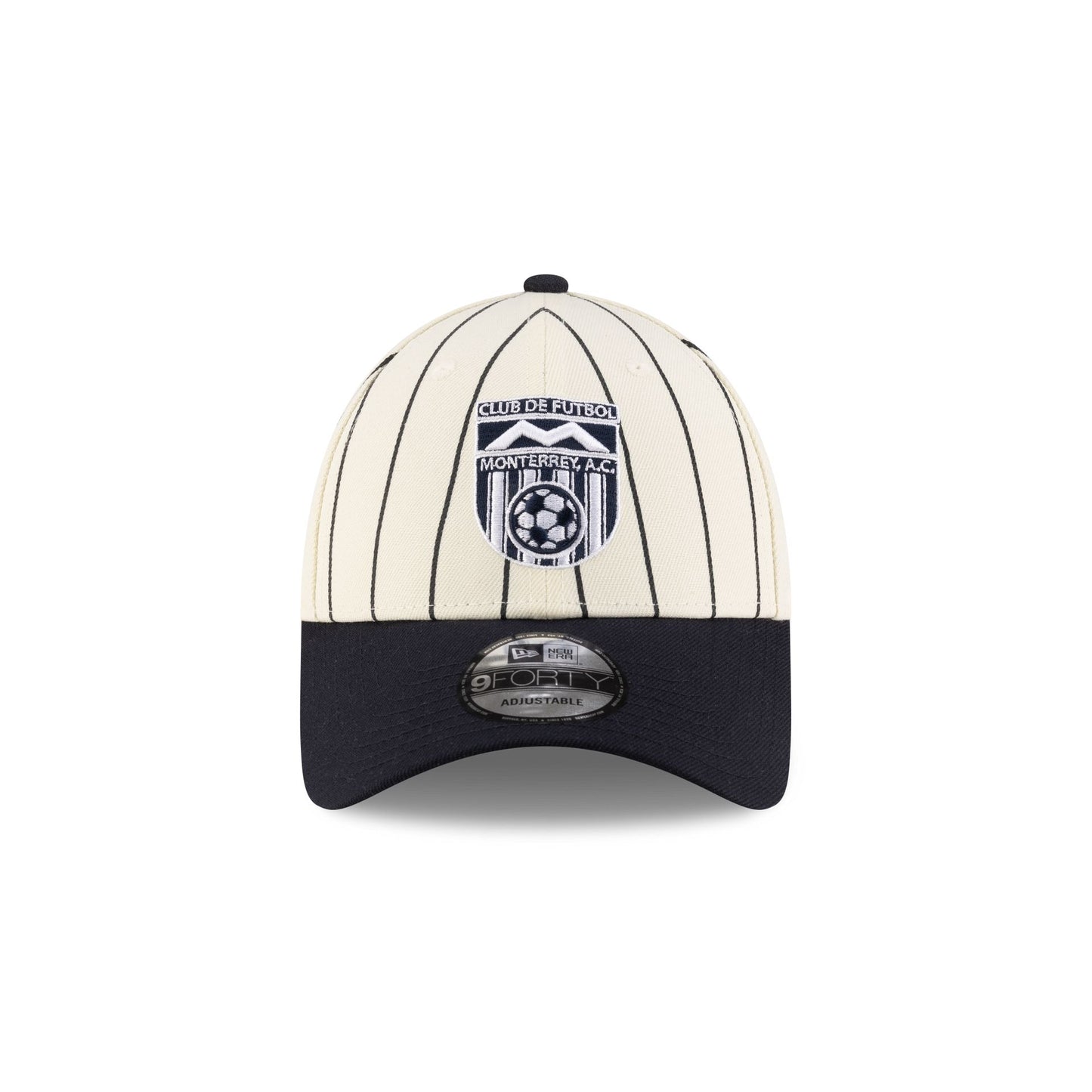 The Rayados Retro Pinstripe 9FORTY Snapback features an embroidered Rayados logo at the front panels with an alternate team logo patch at the right-wear side and an adjustable snapback closure at the rear.