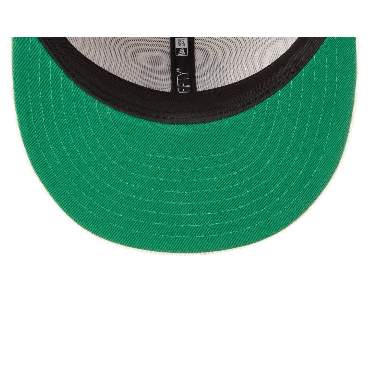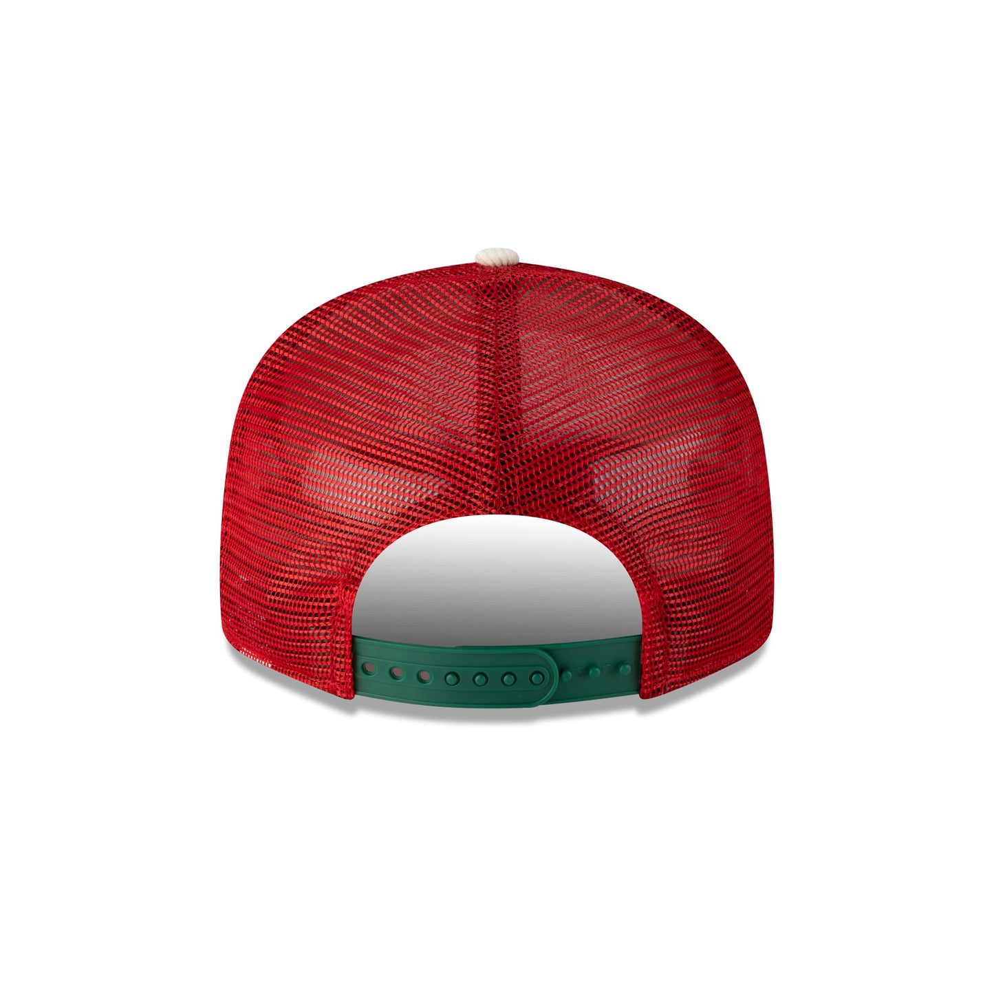 The Rick And Morty Merry Rickmas Chrome Corduroy 9FIFTY Trucker features an embroidered Rick And Morty Merry Rickmas graphic at the front panels with a corduroy fabrication at the front panel. Additional details include an adjustable snapback closure at a mesh rear and a green undervisor.