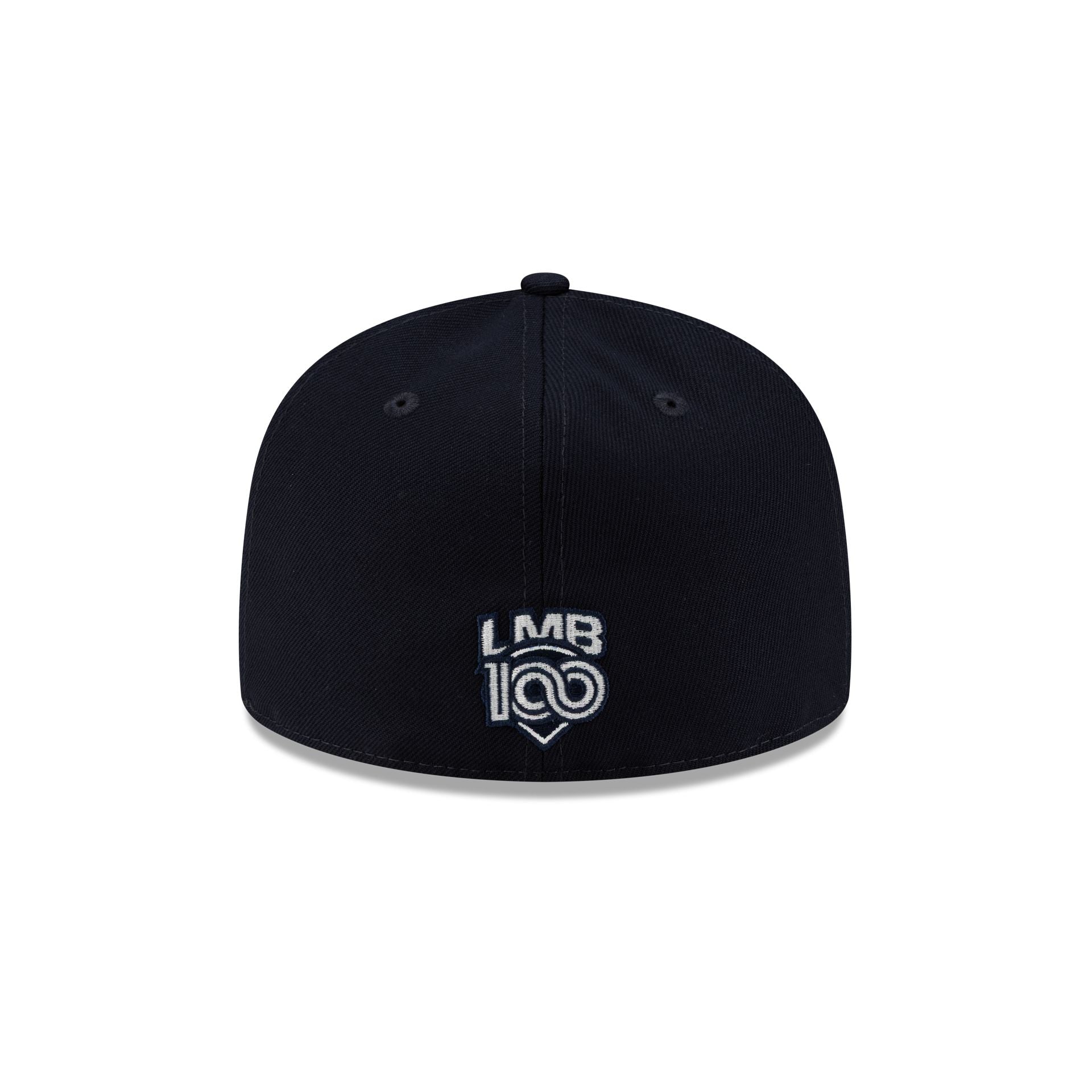 The Rieleros de Aguascalientes Retro 59FIFTY Fitted Cap features an embroidered Reileros retro logo at the front panels with a 100th Anniversary LMB logo at the rear and a green undervisor.