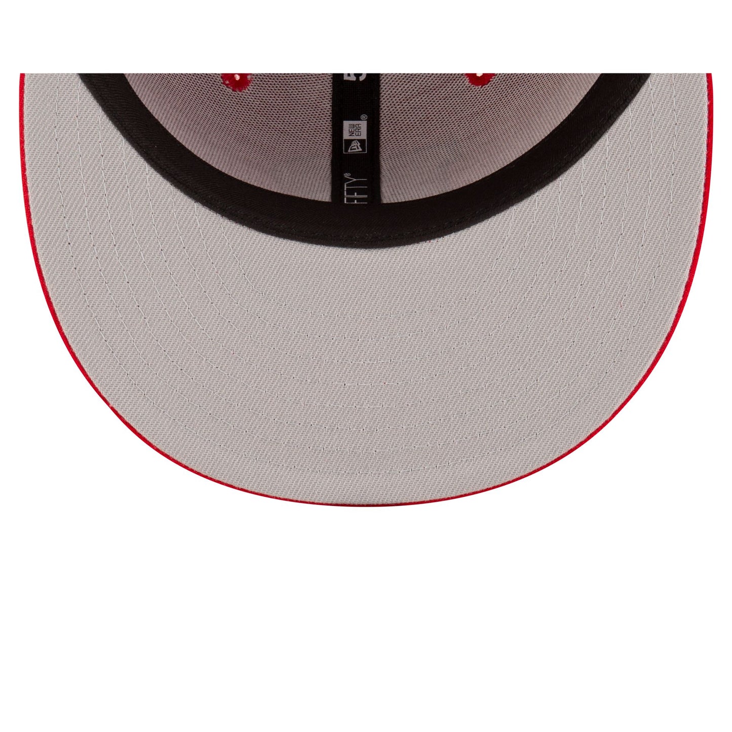The Rutgers Scarlet Knights 59FIFTY Fitted Hat features an embroidered Knights logo at the front panels with a matching Knight at the rear and a gray undervisor.