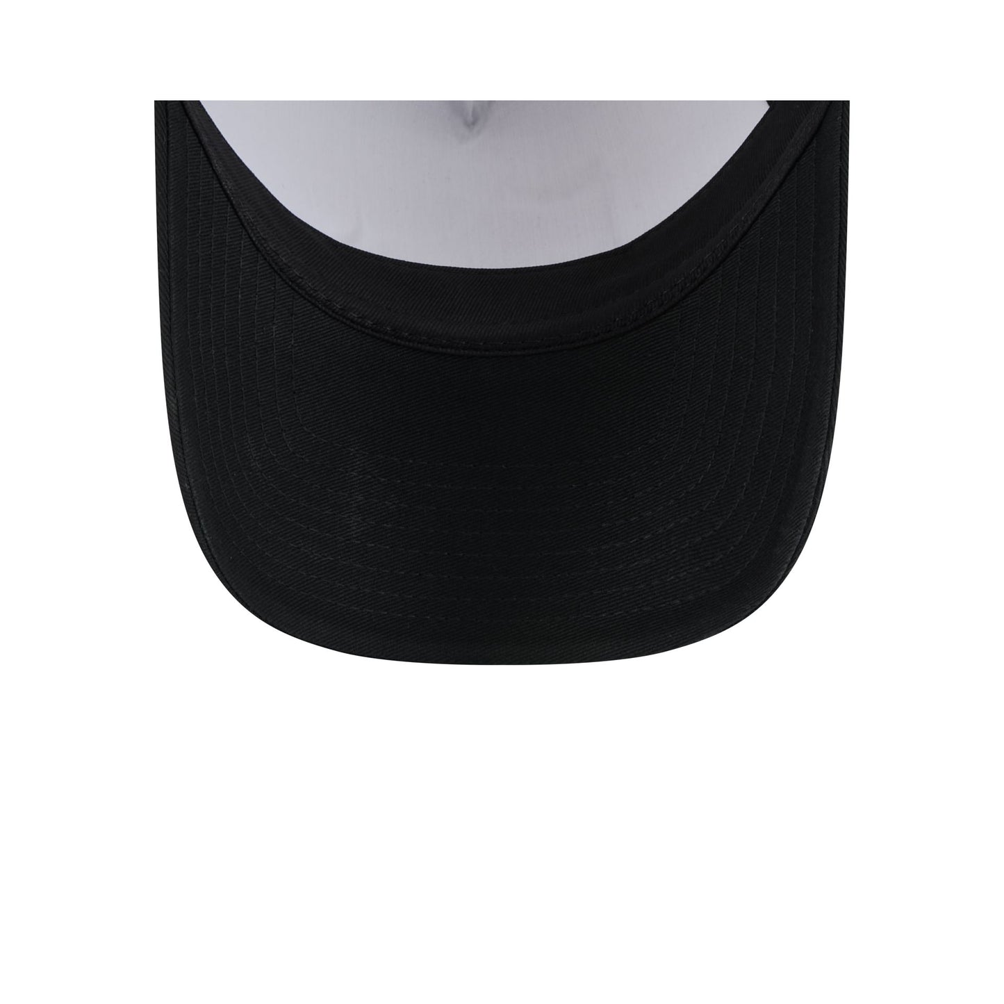 The Sacramento Kings 2025 All-Star Game Fan Pack 9FORTY A-Frame Trucker features an embroidered Kings sneaker logo at the front panels with a mesh back and a snapback closure at the rear.