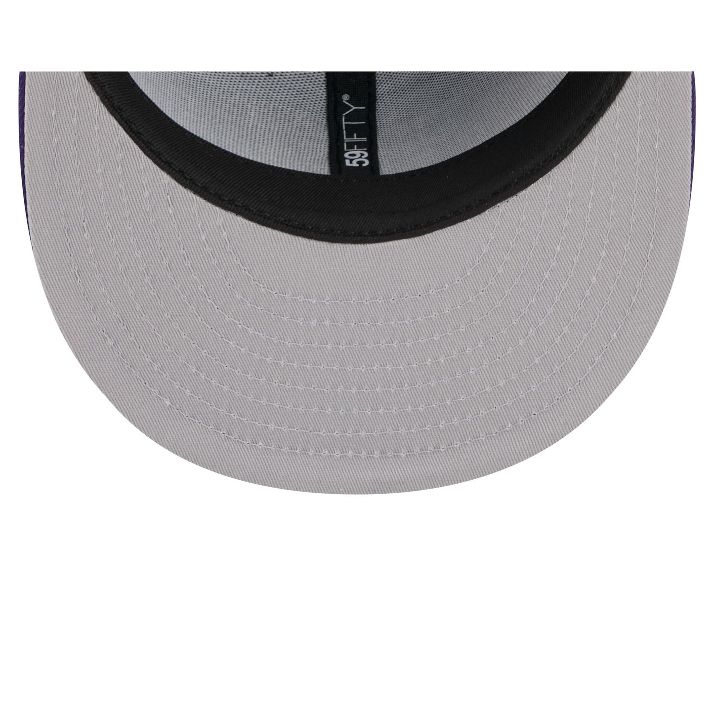 The Sacramento Kings 2025 City Edition 59FIFTY Fitted Cap features an embroidered Kings City Edition logo at the front panels with a logo at the right-wear side. Additional details include the NBA Logoman at the rear and a gray undervisor.