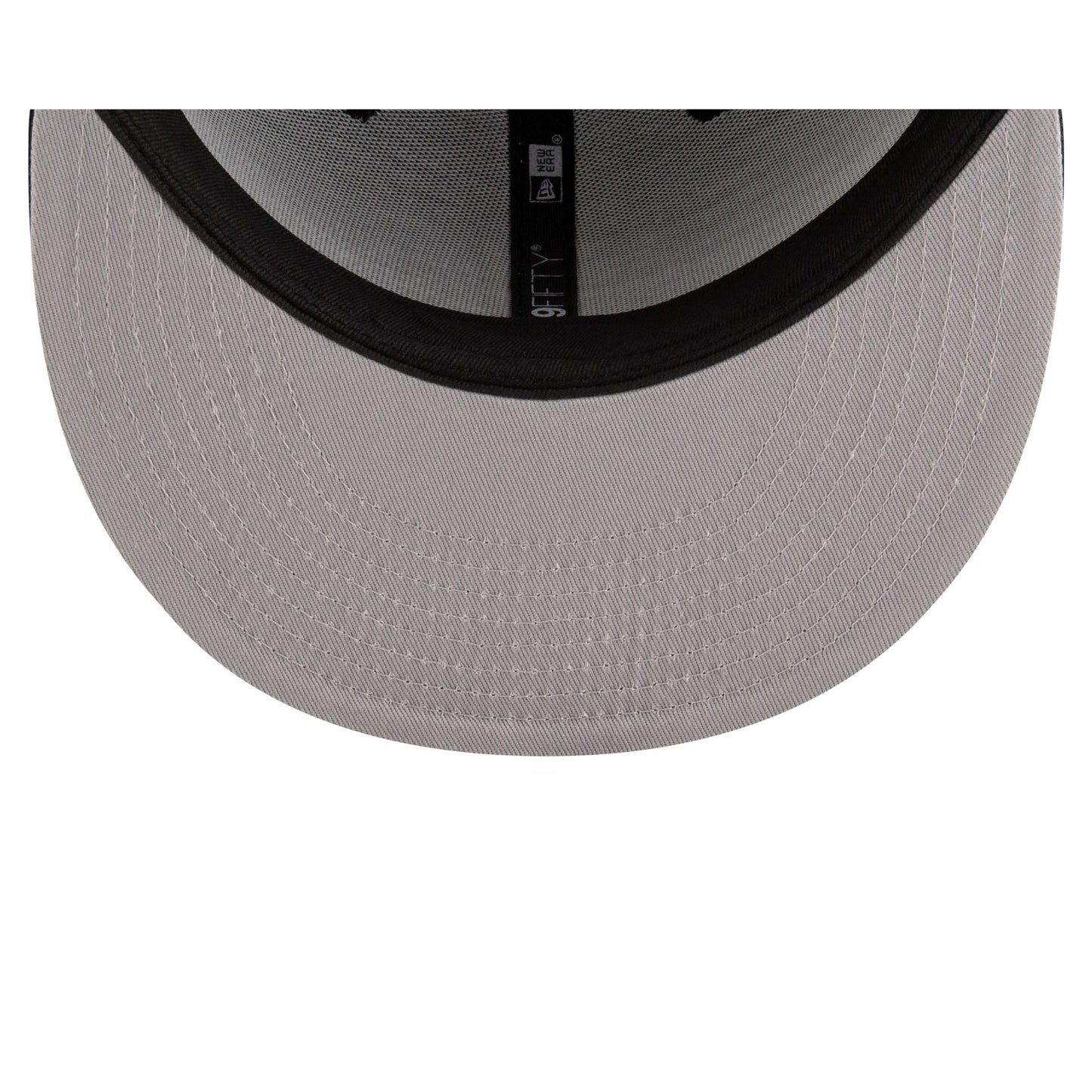 The Sacramento Kings Classic Edition Black 9FIFTY Snapback features an embroidered Kings logo at the front panels with a team logo at the right-wear side. Additional details include an NBA Logoman above a snapback closure at the rear and a gray undervisor.