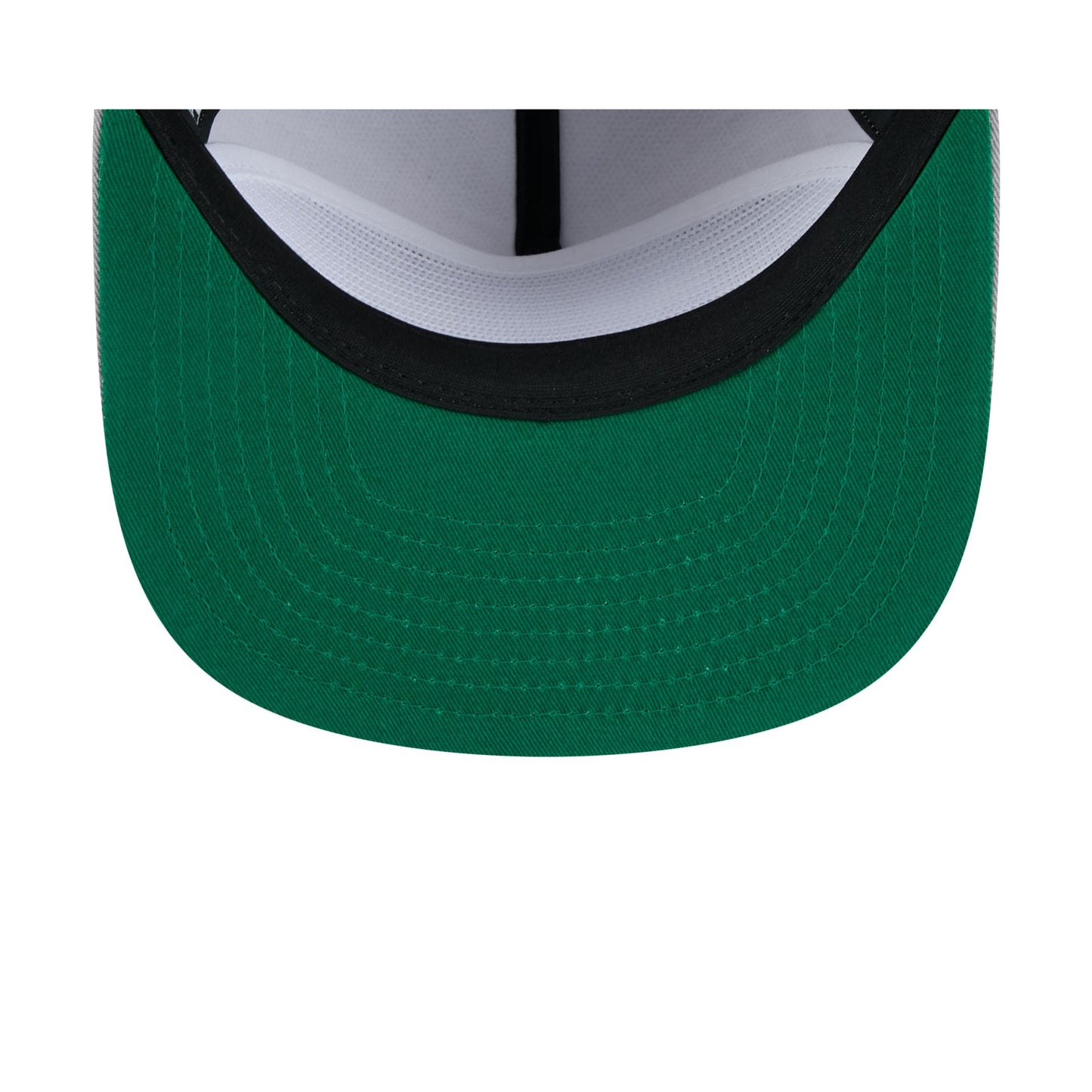 The Sacramento Kings Vintage Gray Golfer features an embroidered "PROPERTY OF" Kings wordmark at the front panels with a team logo at the right-wear side and a rope at the visor. Additional details include a snapback closure at the rear and a green undervisor.
