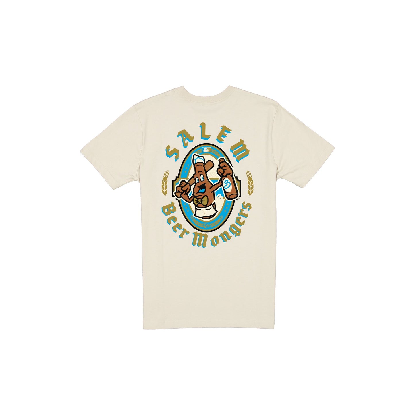 The Salem Red Sox Oktoberfest Chrome White T-Shirt features a screen-printed Oktoberfest-themed Red Sox graphic at the front and back.