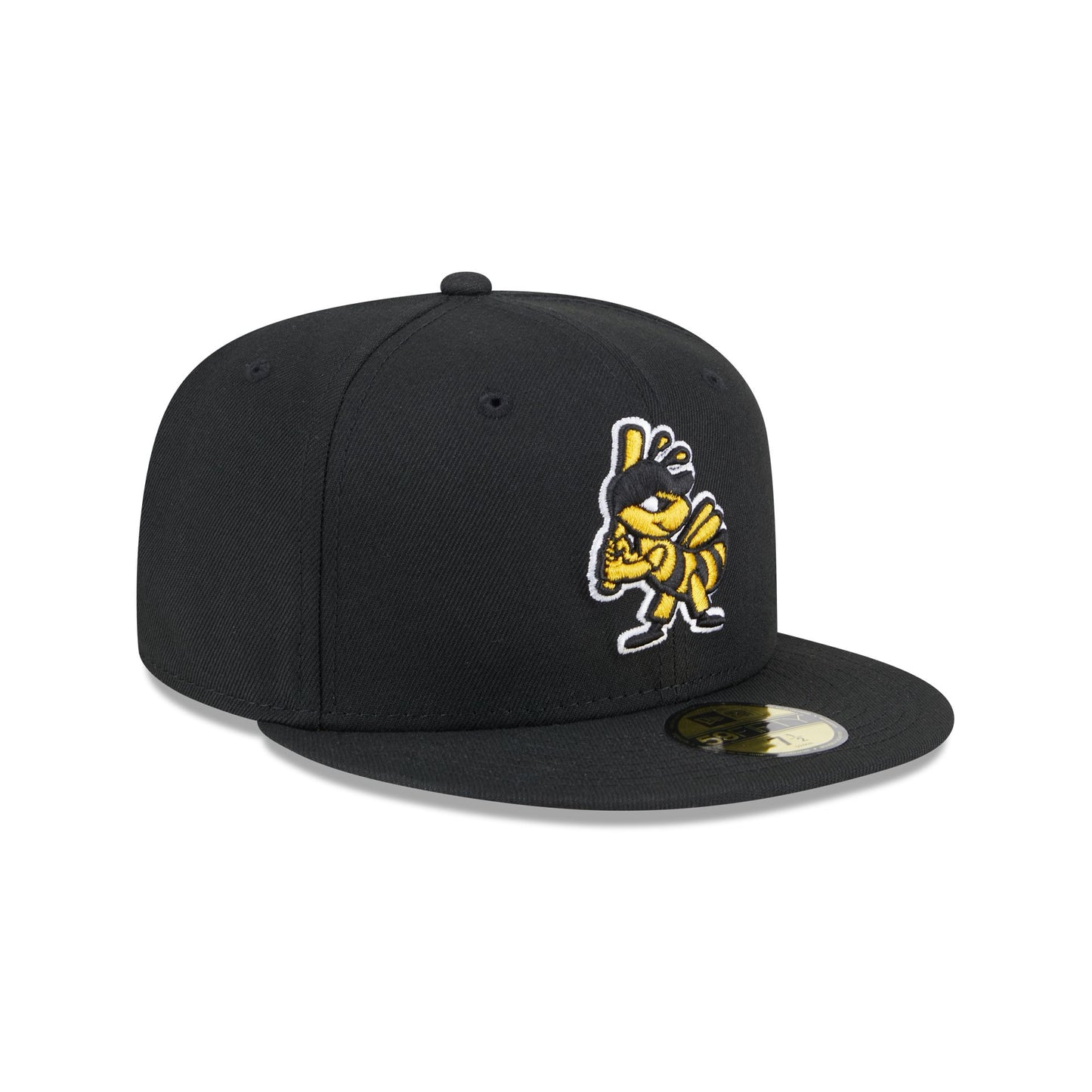 The Salt Lake Bees Authentic Collection 59FIFTY Fitted Cap features an embroidered Bees logo at the front panels with a matching MiLB Batterman logo at the rear and a gray undervisor.