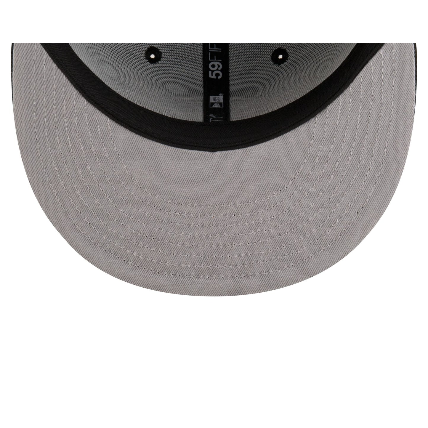 The San Antonio Spurs 2024 Statement Edition 59FIFTY Fitted Cap features an embroidered Spurs wordmark at the front panels with a matching NBA Logoman at the rear. Additional details include a team logo at the right-wear side and a gray undervisor.