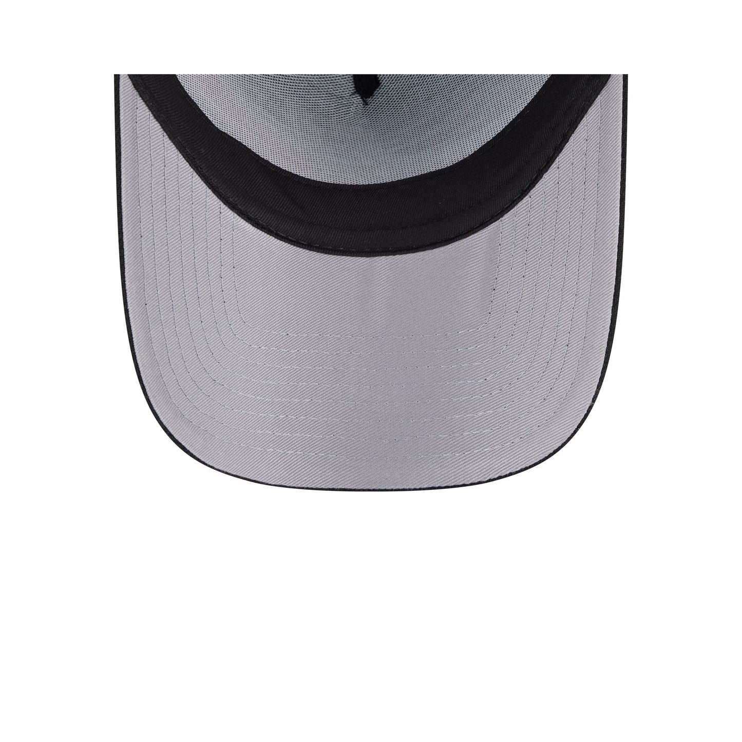 The San Antonio Spurs 2025 City Edition 9FORTY A-Frame Trucker features an embroidered Spurs City Edition logo at the front panels with a logo at the right-wear side. Additional details include the NBA Logoman above an adjustable snapback closure at a mesh rear and a gray undervisor.