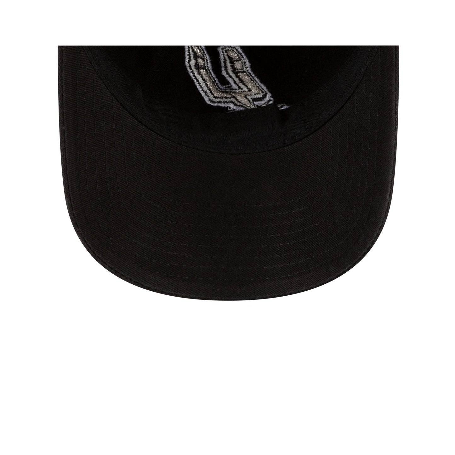 The San Antonio Spurs Core Classic Black 9TWENTY Adjustable Cap features an embroidered Spurs logo at the front panels with a team tag on an adjustable D-Ring closure at the rear.