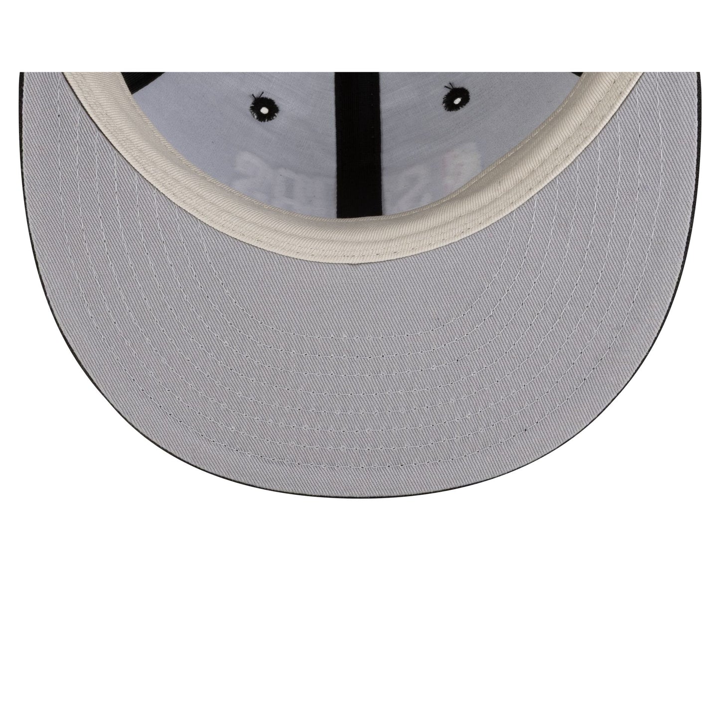 The San Antonio Spurs Fear of God Essentials Retro Crown 9FIFTY Snapback features an embroidered Spurs Essentials logo at the front panels with an adjustable snapback closure at the rear and a gray undervisor.
