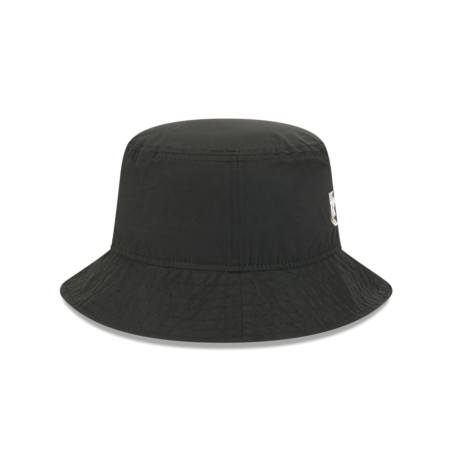 The San Antonio Spurs Nylon Logo Bucket Hat features an embroidered Spurs logo, establishment date, and NBA Logoman at the front.