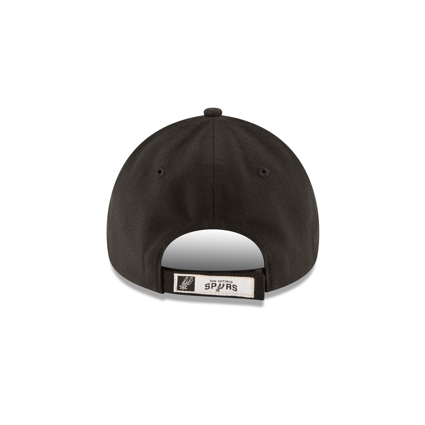 The San Antonio Spurs The League 9FORTY Adjustable Cap features an embroidered Spurs logo at the front panels with a matching logo and team wordmark on a hook-and-loop closure at the rear.
