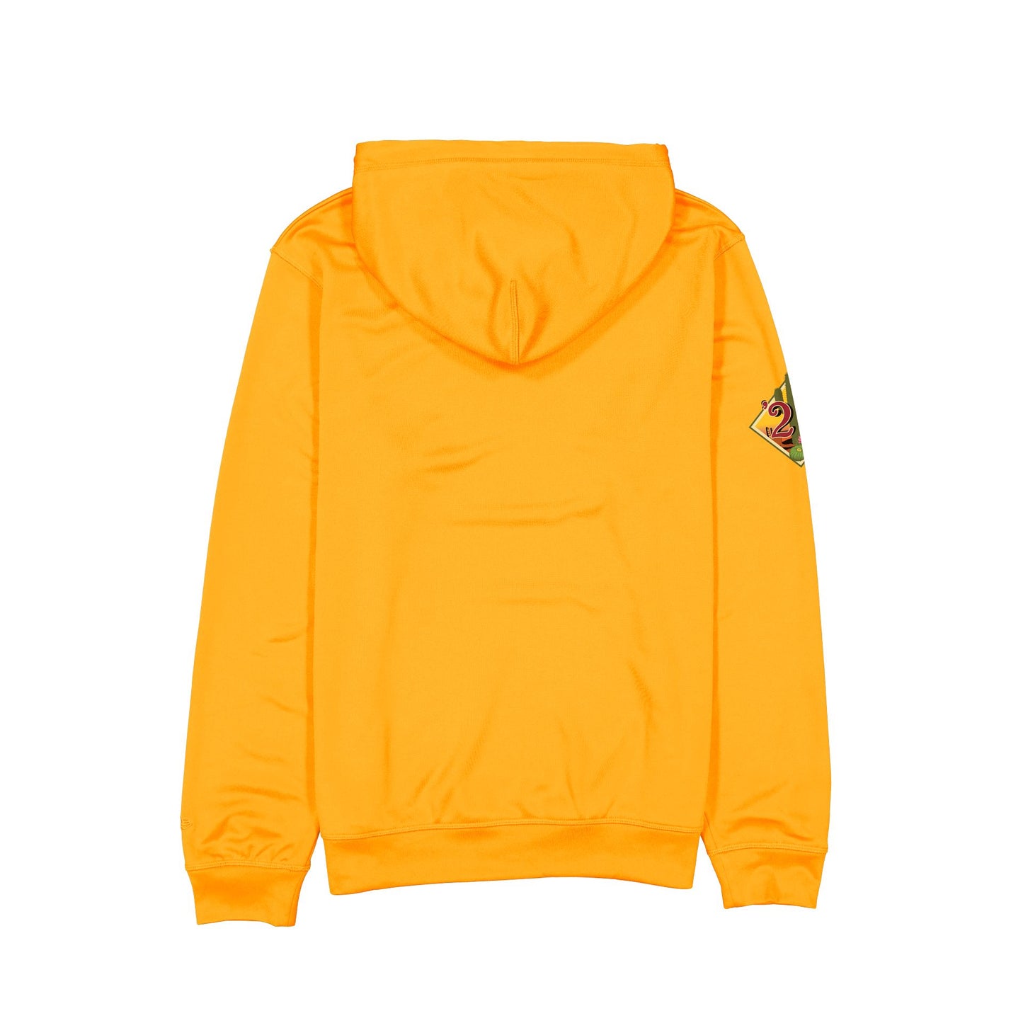 The San Diego Padres San Diego Padres 2026 Spring Training Hoodie features a screen-printed floral Padres logo at the front with a Spring Training patch at the right arm. Additional details include kangaroo pockets and adjustable drawstrings at the hood.