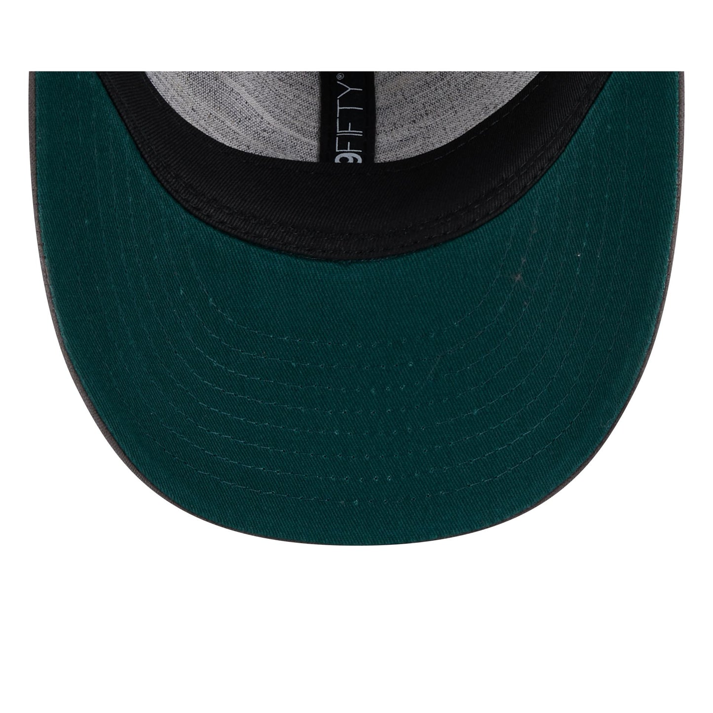 The San Diego Padres Canvas Felt Retro Crown 9FIFTY Strapback Cap features an embroidered Padres logo at the front panels with a matching MLB Batterman logo at the right rear. Additional details include an adjustable D-Ring closure at the rear and a green undervisor.