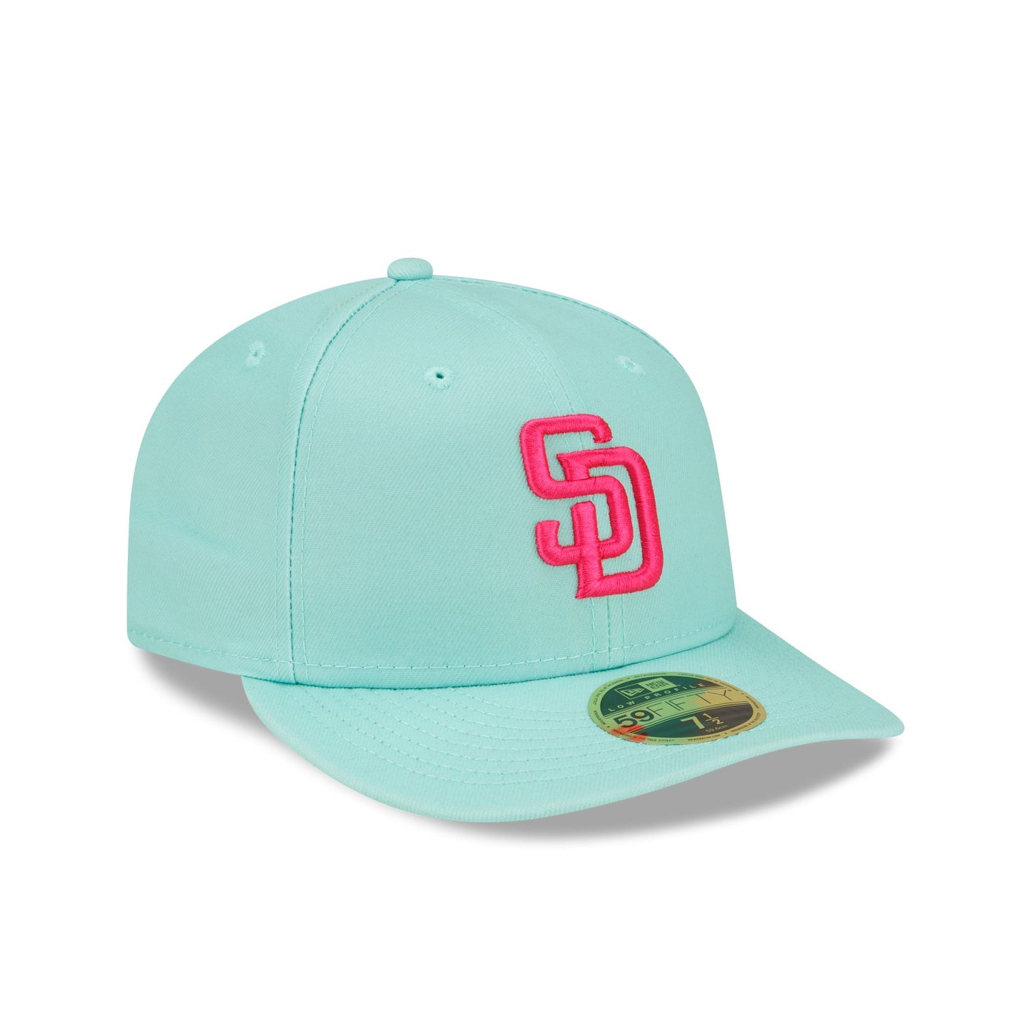 Jersey inspired, city connected. The San Diego Padres City Connect Low Profile 59FIFTY Fitted Cap draws originality from unique elements tied to the surrounding city and features an embroidered Padres logo at the front panels with a black undervisor and an MLB Batterman logo at the rear.