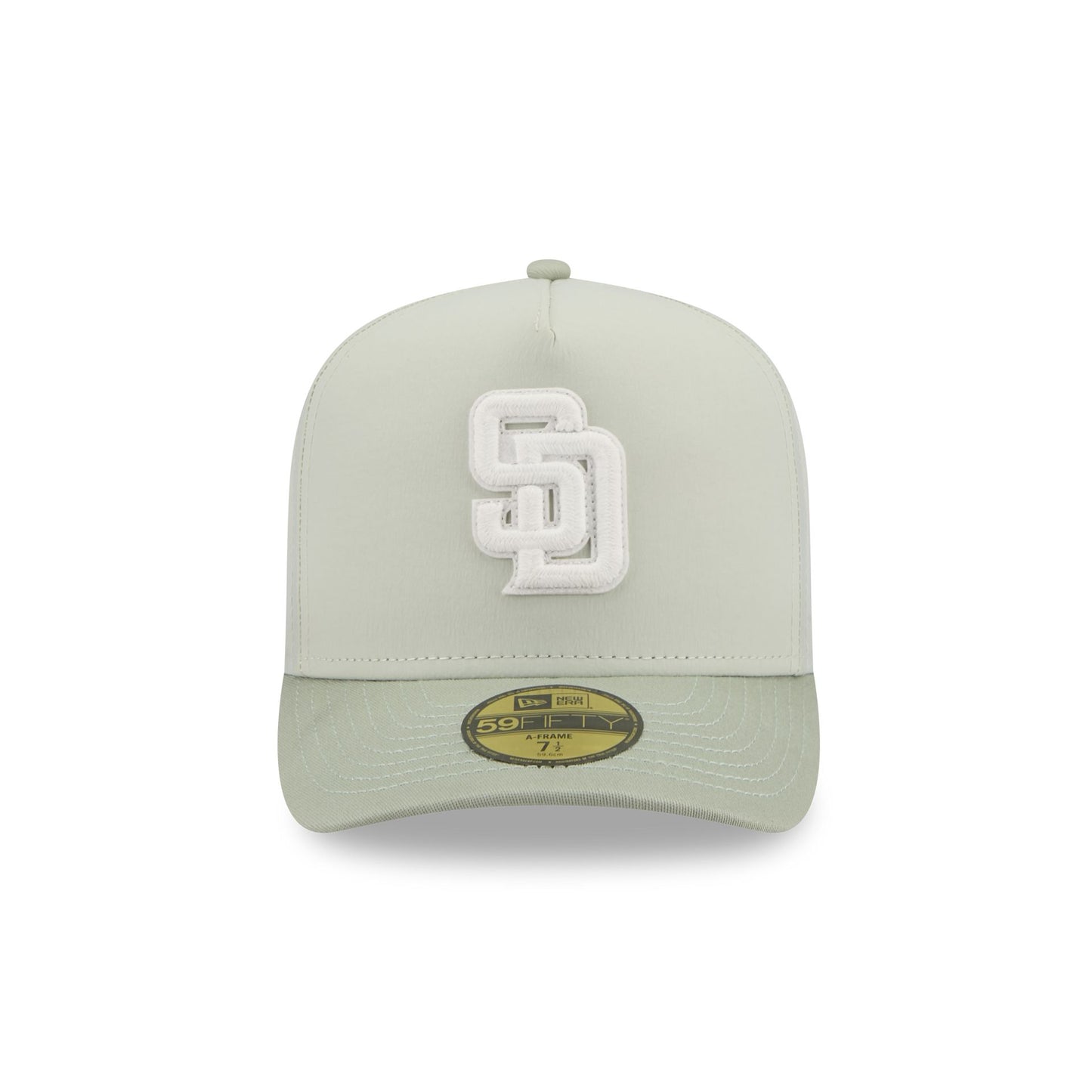The San Diego Padres Crinkle 59FIFTY A-Frame Fitted Cap features an embroidered Padres logo at the front panels with a nylon fabrication throughout and the MLB Batterman logo at the rear.