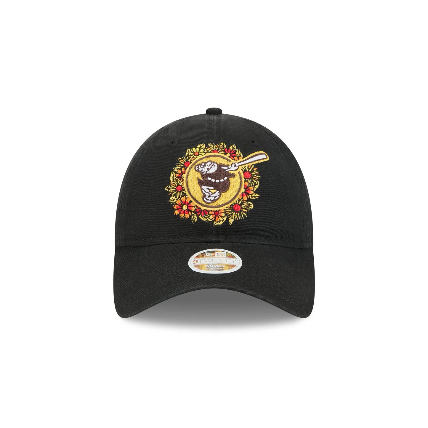 The San Diego Padres Day of the Dead Floral 9TWENTY Adjustable Cap features an embroidered Padres floral logo at the front panels with and adjustable D-Ring closure at the rear and a gray undervisor.