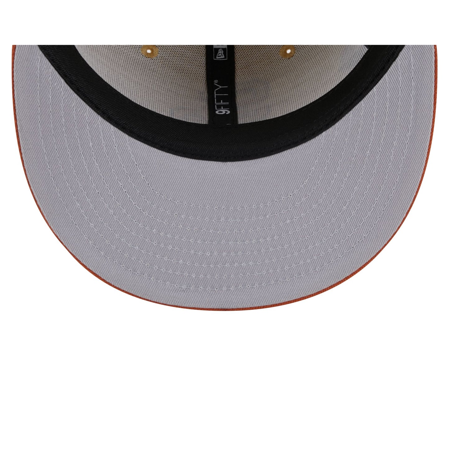 The San Diego Padres Fall Landscape 9FIFTY Snapback features an embroidered Padres Cooperstown logo at the front panels with a fall landscape at the right-wear side, a gray undervisor, and a snapback closure at the rear.