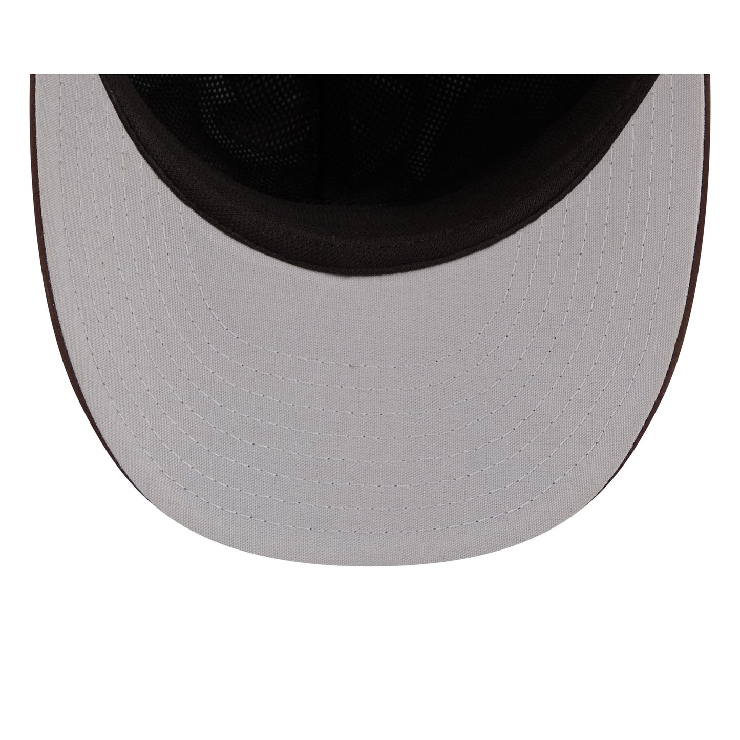 The San Diego Padres GORE-TEX 59FIFTY Fitted Cap features an embroidered Padres logo at the front panels with a metallic sheen silicone New Era Flag logo and GORE-TEX logo at the left-wear side. Additional details include the MLB Batterman logo at the rear, a gray undervisor, and a polyester fabrication throughout the cap. It is waterproof, breathable, and lightweight. This 59FIFTY comes with a pre-curved visor.