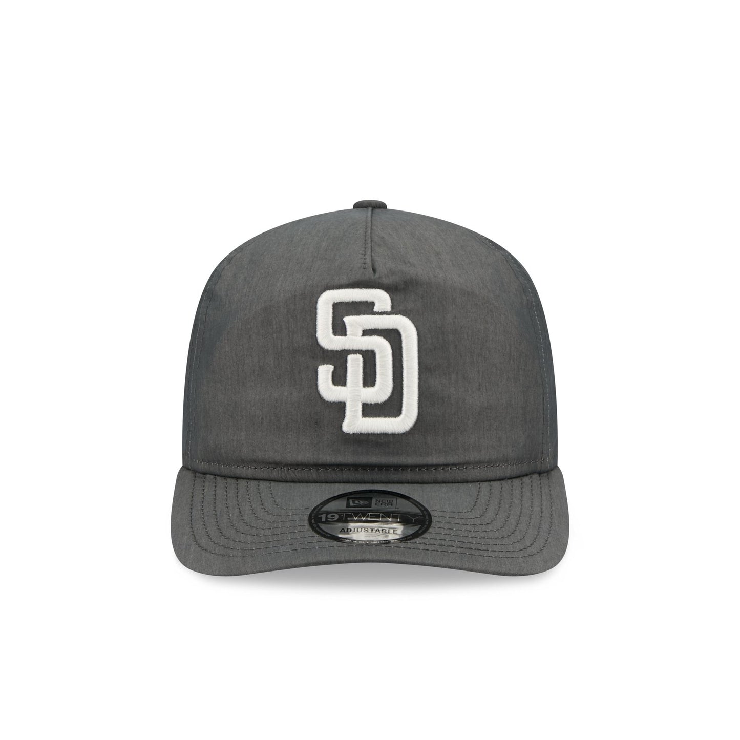 The San Diego Padres Heather Gray Nylon 19TWENTY Adjustable Cap features an embroidered Padres white logo at the front panels with an adjustable snapback closure at the rear and a gray undervisor.