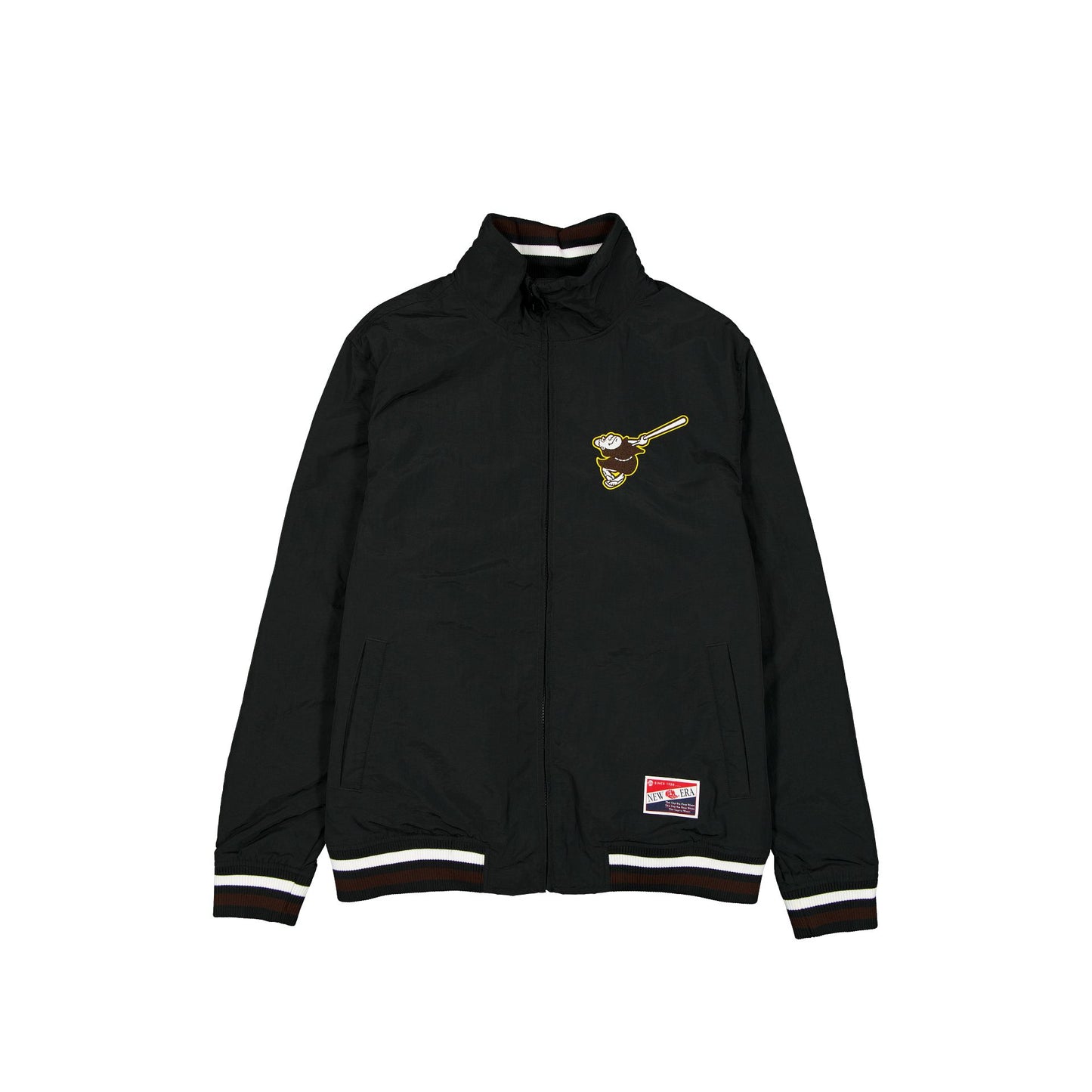 The San Diego Padres Throwback Nylon Jacket features a nylon applique Padres graphic embroidered at the front left chest and rear. Addition details a full-zip closure and front pockets.
