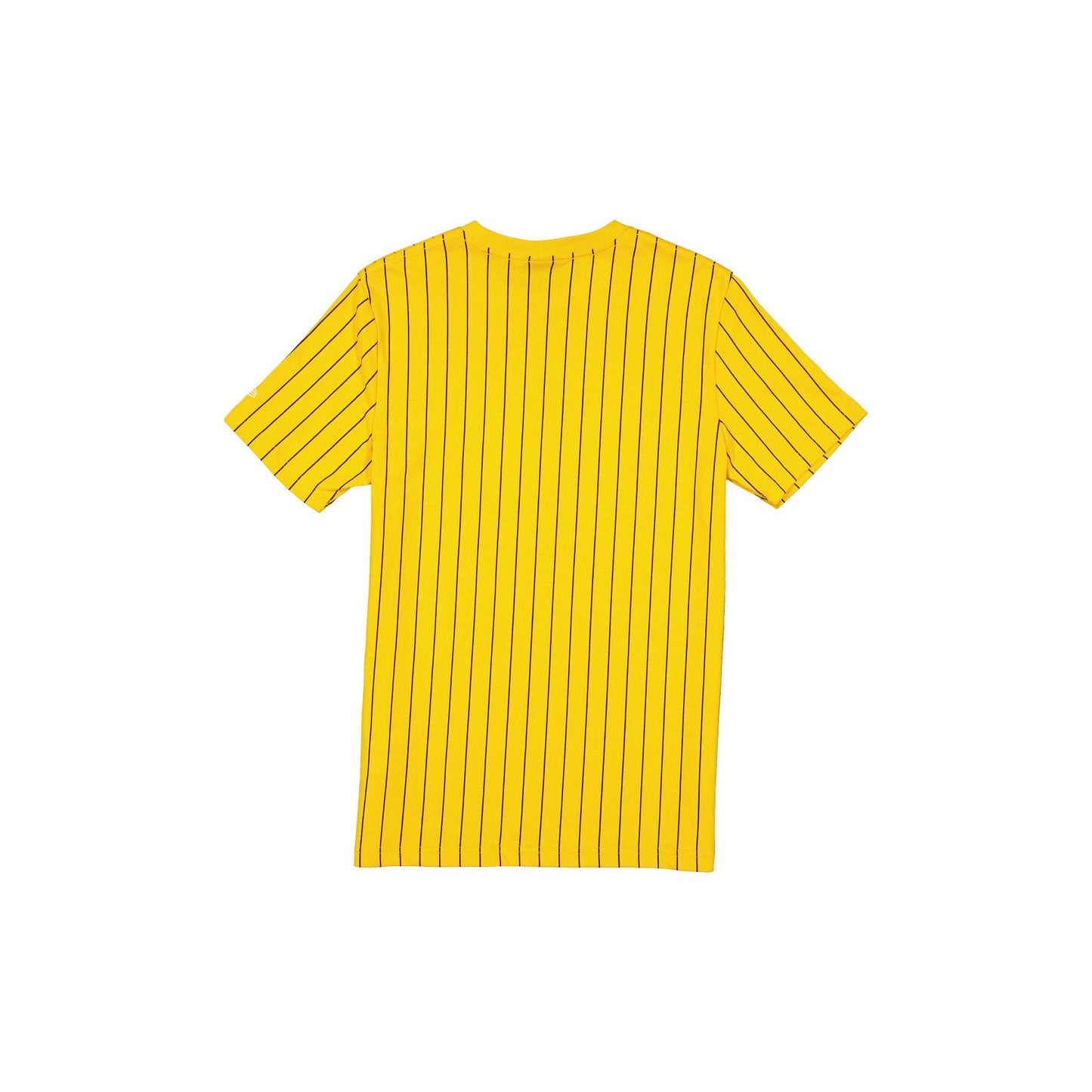 The San Diego Padres Throwback Pinstripe T-Shirt features an embroidered Padres logo and wordmark at the front with a New Era jock tag at the left hip.