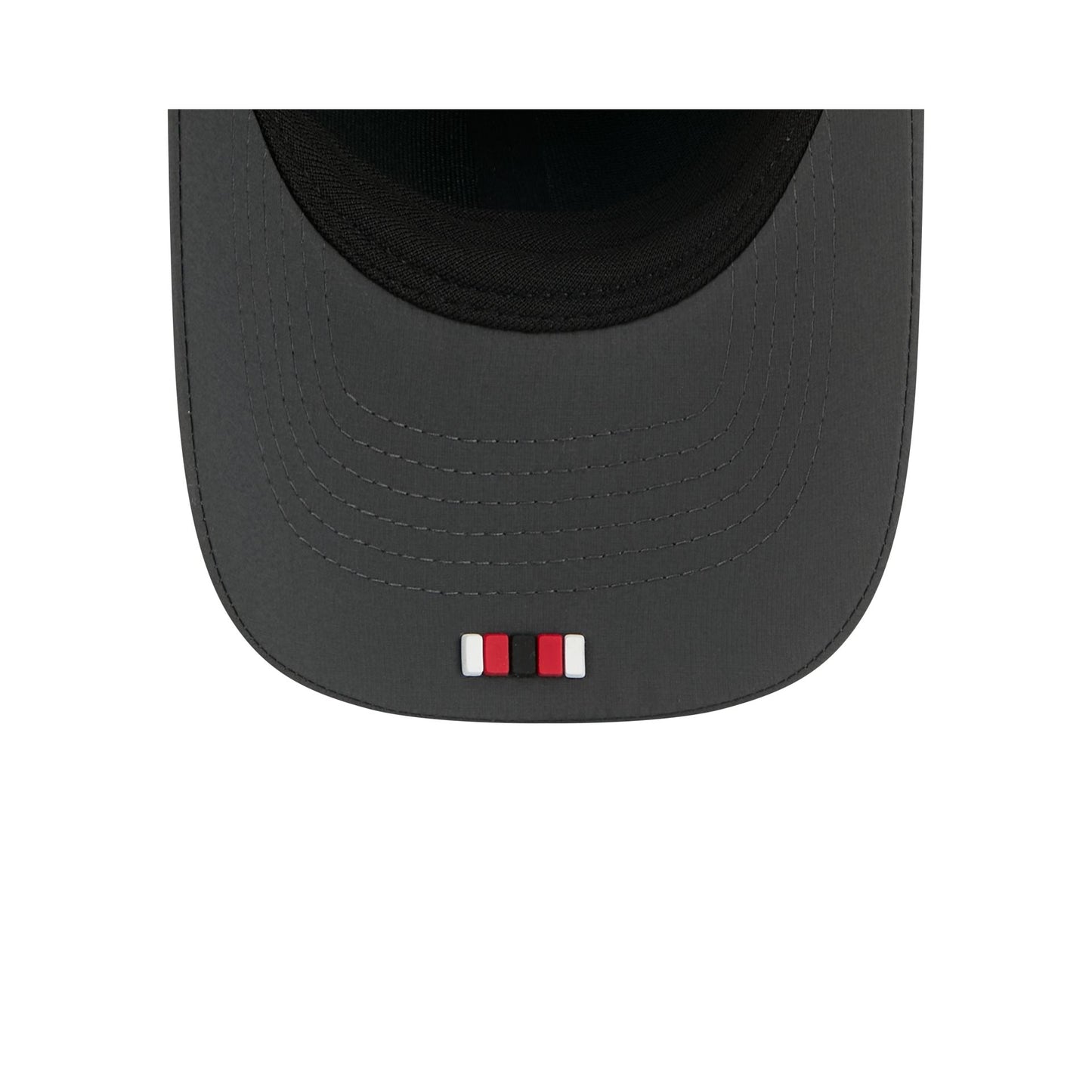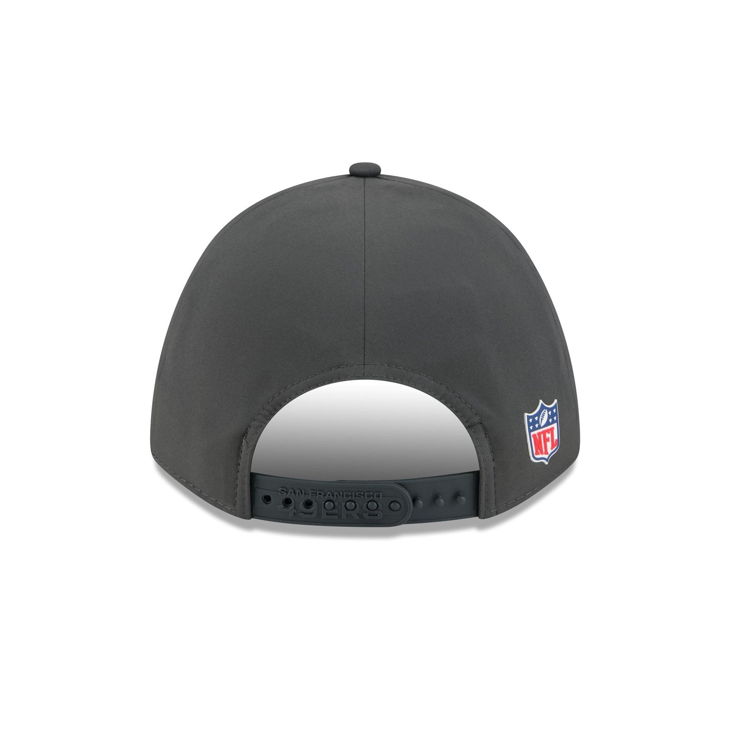 The San Francisco 49ers 2025 Sideline Cold Weather Steel Clouds 9FORTY M-Crown Snapback features a sewn-down silicone 49ers logo patch at the front panels with a water-repellent quill tech fabrication throughout and a quick-dry cushioned sweatband to absorb moisture. Additional details include the Official NFL Shield logo to the right of a soft silicone snapback closure at the rear. The crown has bonded seams to trap warmth and the undervisor is accented with a silicone transfer in the team’s colors.