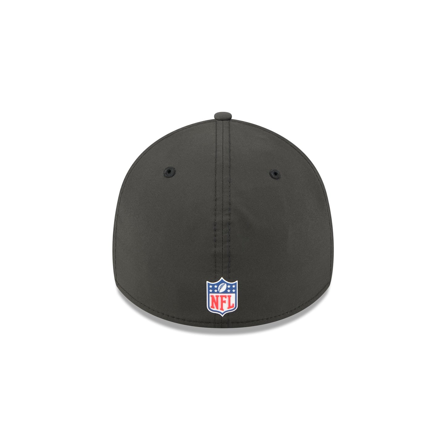 The San Francisco 49ers 2025 Sideline Hot Weather Black 39THIRTY Stretch Fit features a sewn-down silicone 49ers logo patch at the front panels with the Official NFL Shield logo at the rear. The cap has a water-repellent quill tech fabrication throughout, with an insulated crown and quick-dry cushioned sweatband. The undervisor is accented with a silicone transfer in the team’s colors.