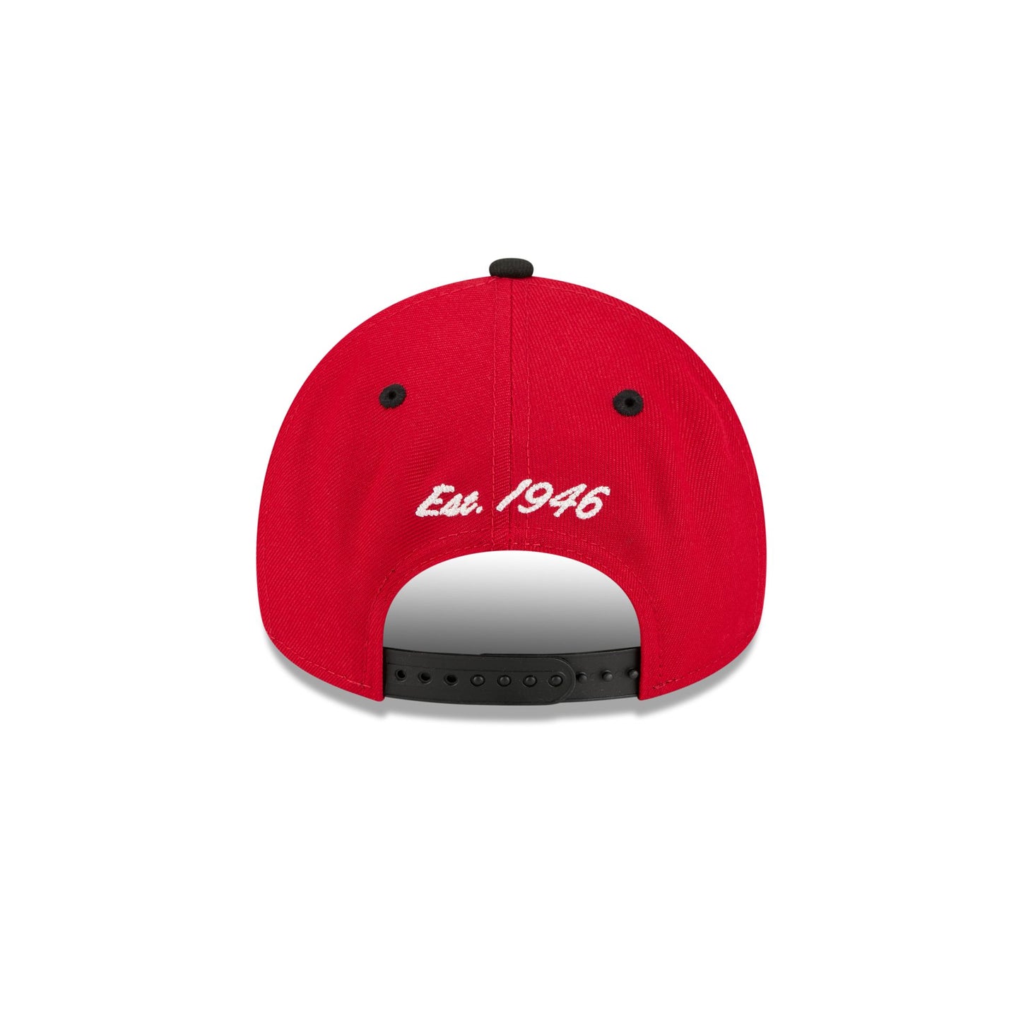 The San Francisco 49ers Arched 9FORTY A-Frame Snapback features an embroidered 49ers arched logo graphic at the front panels with a team graphic at the right-wear side. Additional details include the establishment date above an adjustable snapback closure at the rear and a gray undervisor.