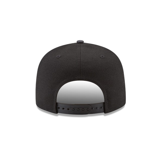 The San Francisco 49ers Black and White 9FIFTY Snapback features an allover black fabrication with an embroidered 49ers logo at the front panels with an adjustable snapback closure at the rear.