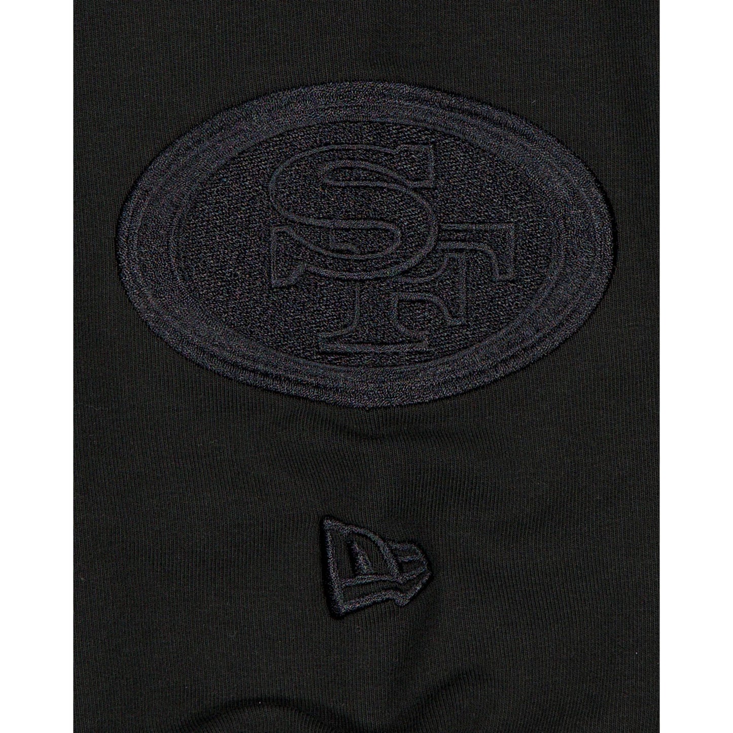 The San Francisco 49ers Black on Black Logo Select Hoodie features a satin applique with a tonal stitch 49ers wordmark at the chest and an embroidered team logo at the left-wear sleeve.