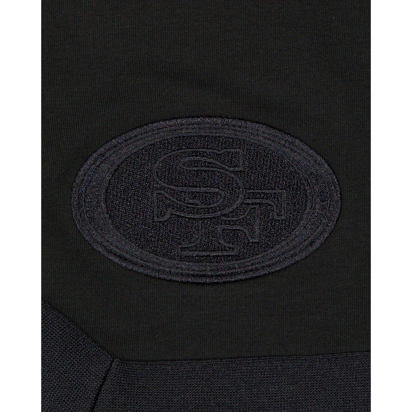 The San Francisco 49ers Black on Black Logo Select Shorts features an embroidered 49ers logo at the right-wear leg and a satin applique with a tonal stitch team wordmark at the rear left leg.