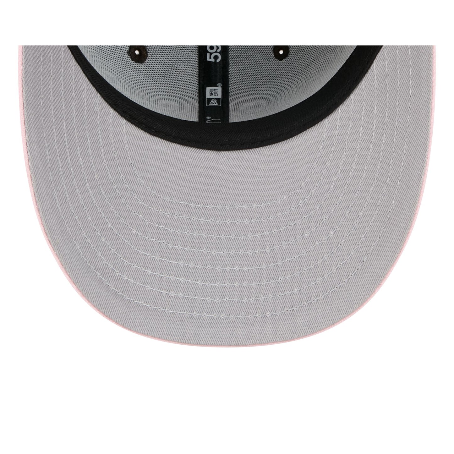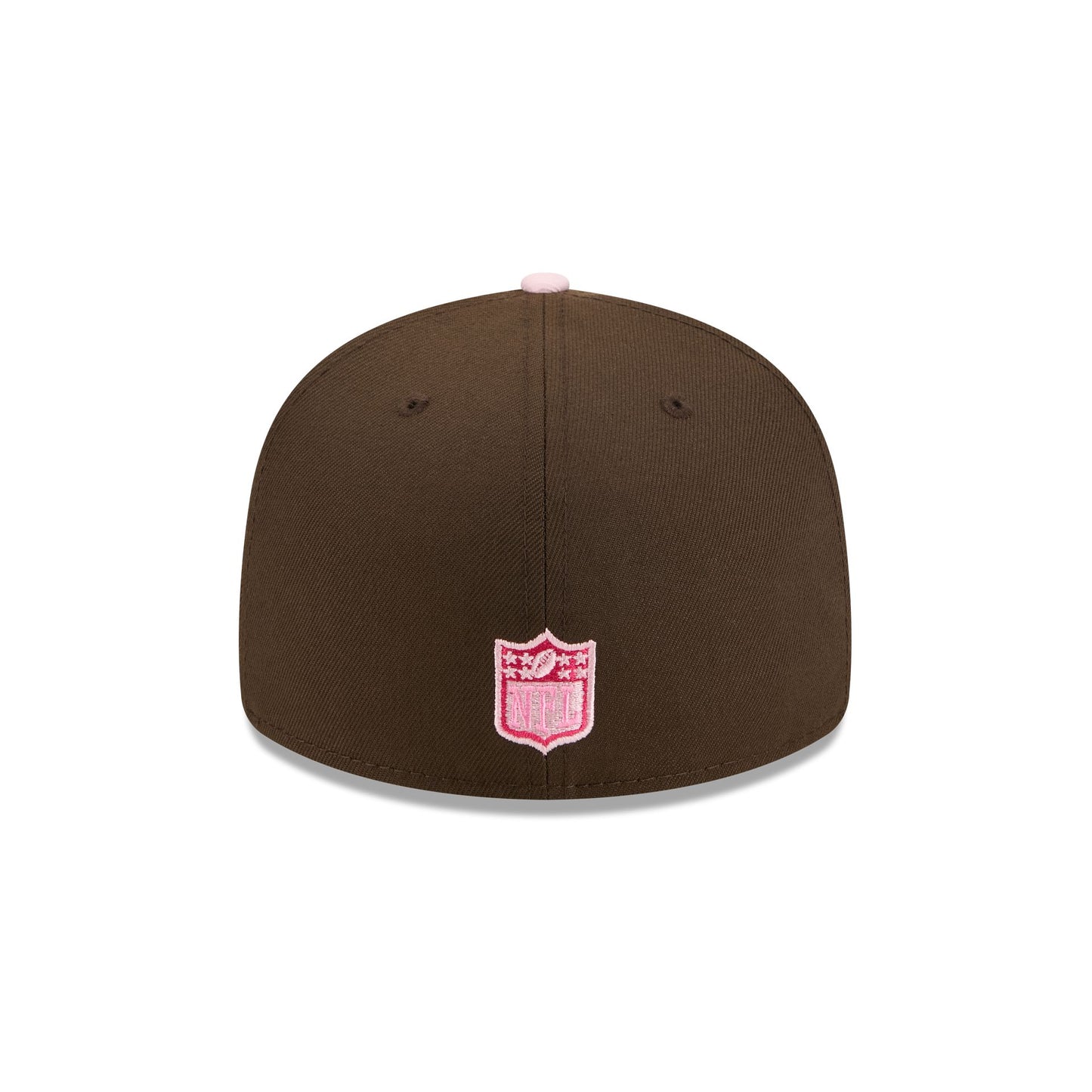The San Francisco 49ers Brains 59FIFTY Fitted Cap features an embroidered brain themed 49ers logo at the front panels with a matching NFL Shield at the rear. Additional details include scratch details at the right-wear side with a light pink visor and a gray undervisor. This cap comes with a pre-curved visor.