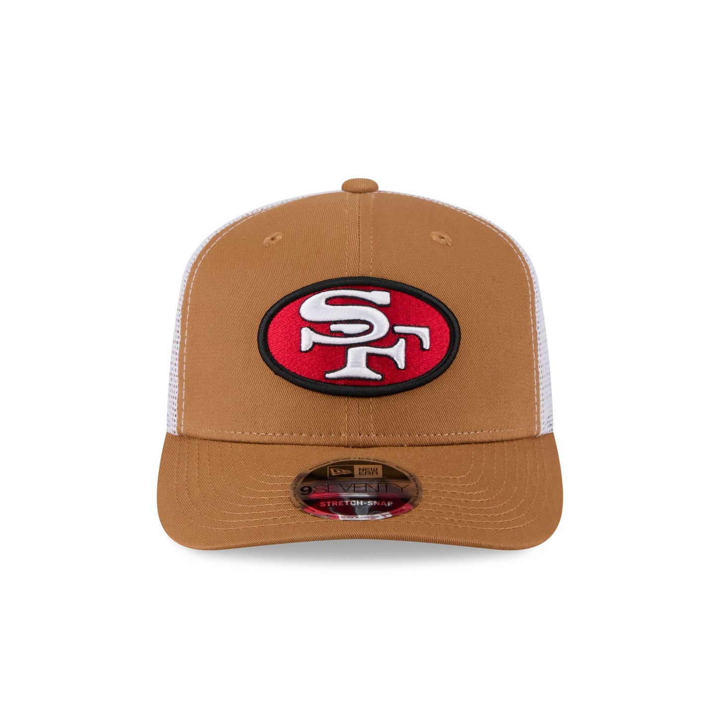 The San Francisco 49ers Bronze 9SEVENTY Trucker features an embroidered 49ers Historic logo at the front panels with a matching woven team tag at a snapback closure at the rear.