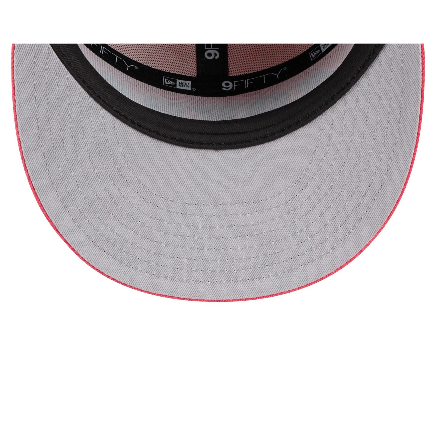 The San Francisco 49ers Coral Split Panel 9FIFTY Snapback features an embroidered 49ers wordmark at the front panels with a snapback closure at the rear, a multicolored crown, and a gray undervisor.