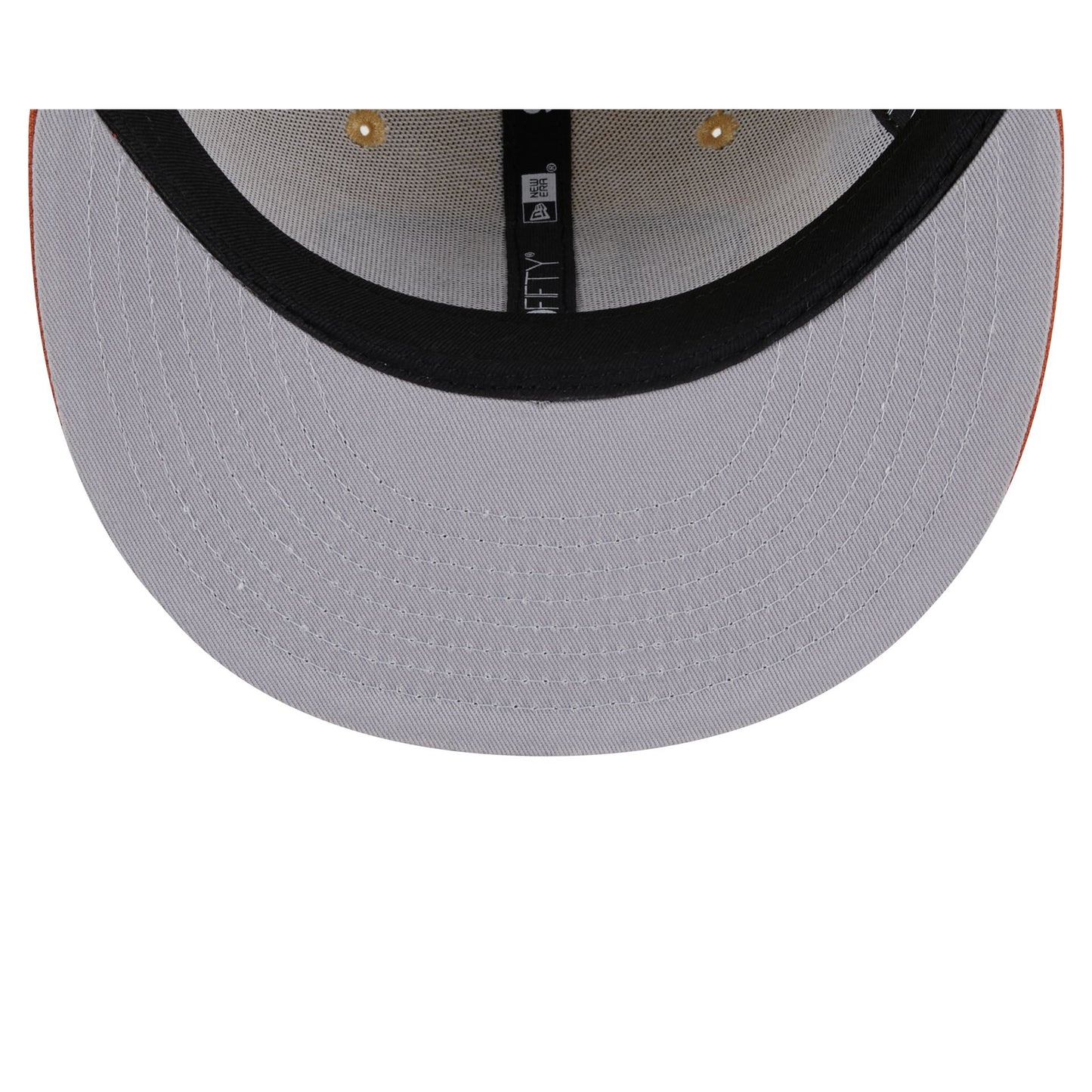 The San Francisco 49ers Fall Landscape 9FIFTY Snapback features an embroidered 49ers logo at the front panels with a fall landscape at the right-wear side, a gray undervisor, and a snapback closure at the rear.