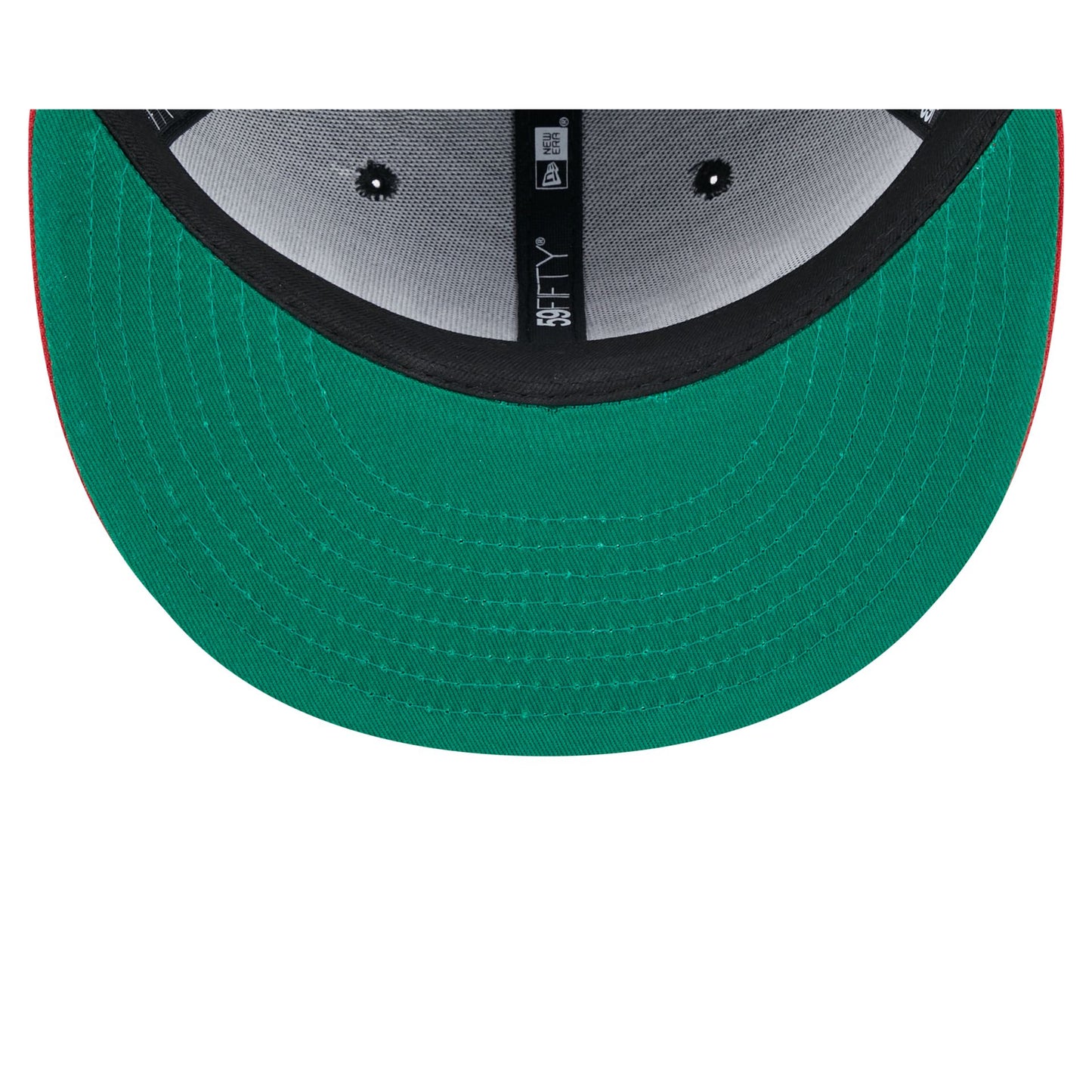 silhouette GuideThe San Francisco 49ers Faux Leather Crown 59FIFTY Fitted Cap features an embroidered 49ers wordmark at the front panels with a matching NFL Shield at the rear, a red visor, and green undervisor.