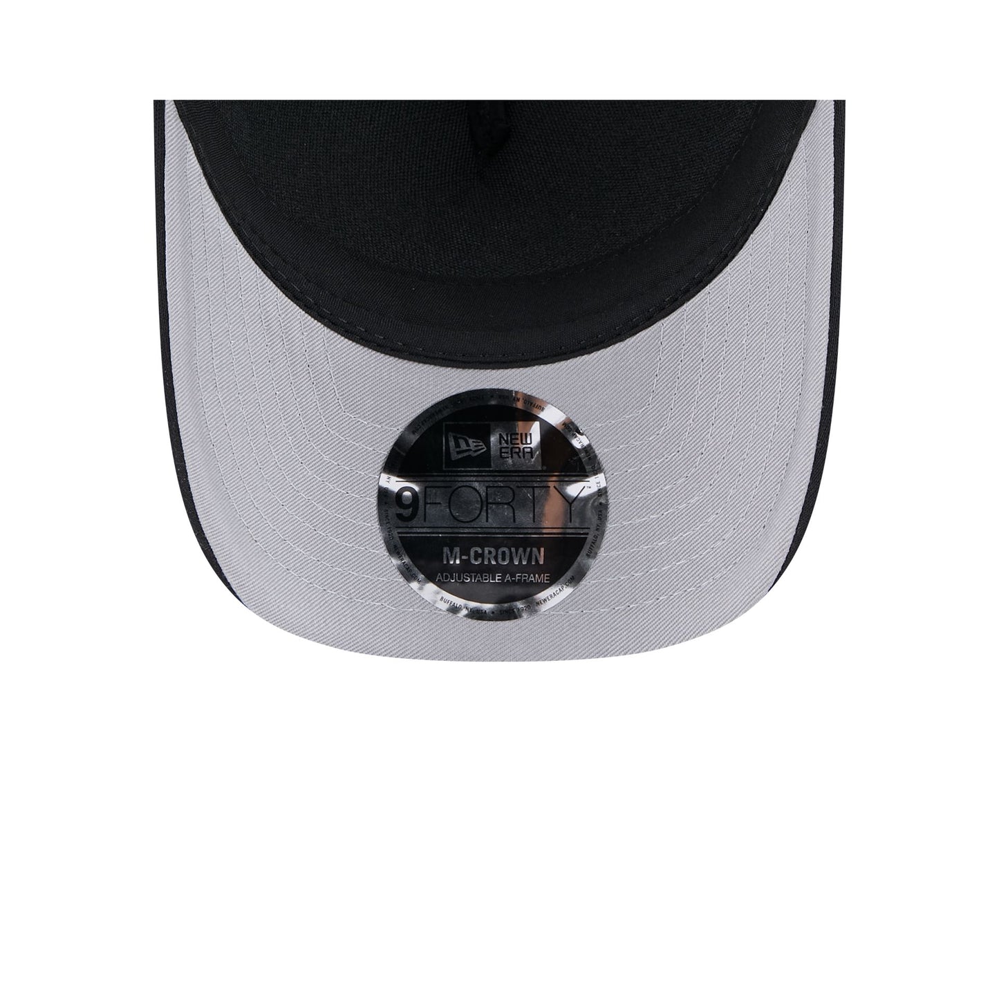 The San Francisco 49ers Gradient Raceway 9FORTY M-Crown A-Frame Trucker features an embroidered 49ers gradient logo at the front panels with a snapback closure at a mesh rear and a gray undervisor.