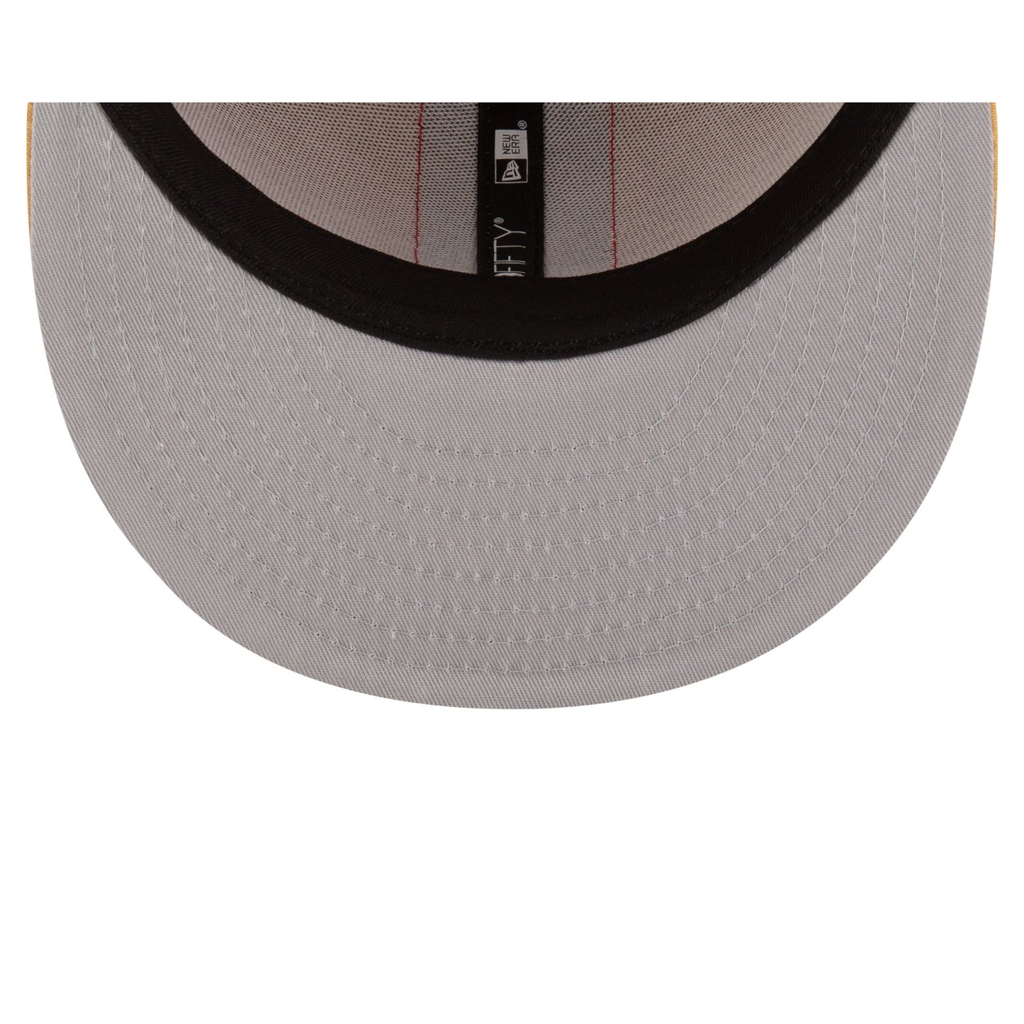 The San Francisco 49ers Helmet Pack 9FIFTY Snapback features an embroidered fabric applique 49ers replica helmet design at the crown with a matching woven team logo tag at an adjustable snapback closure at the rear and a gray undervisor.