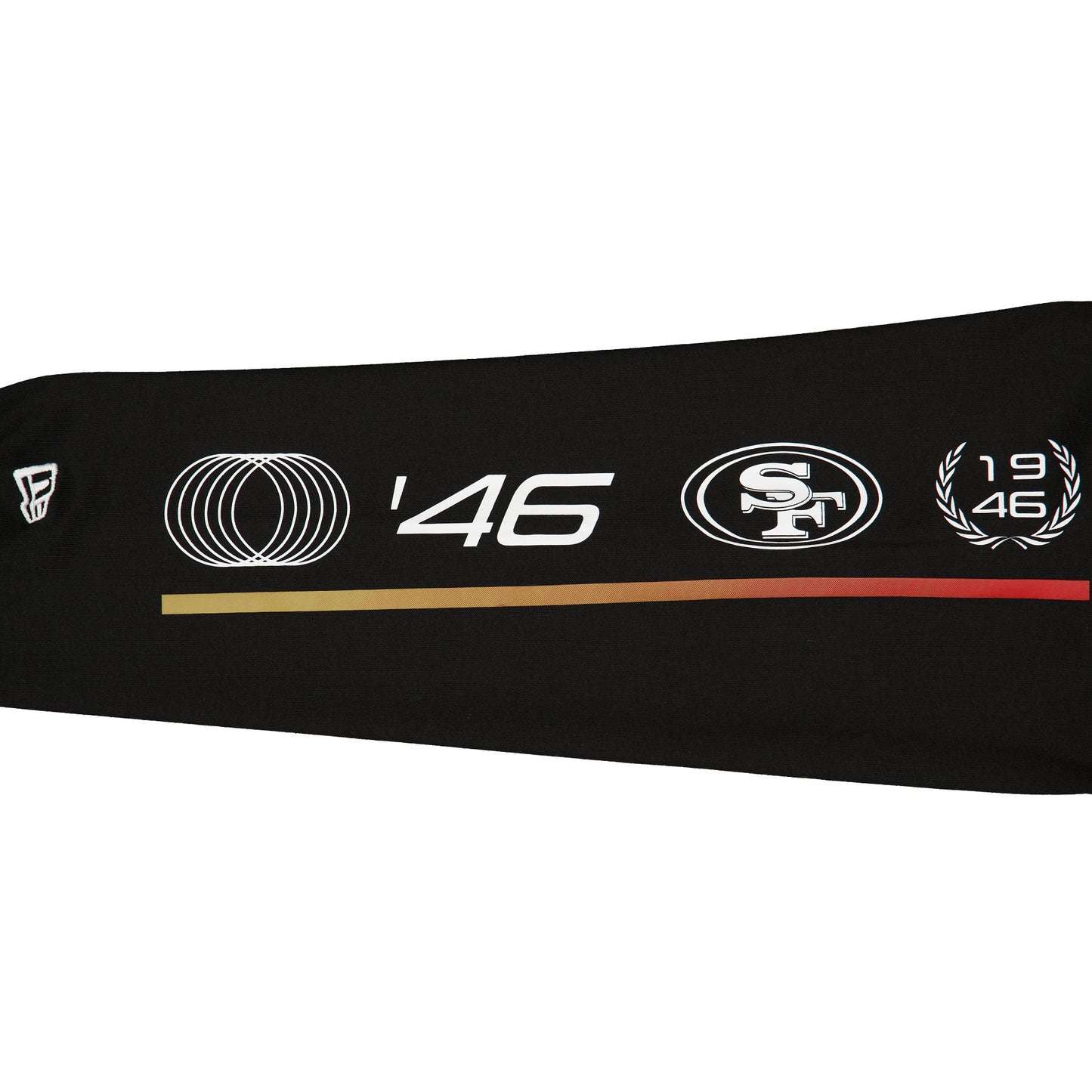 The San Francisco 49ers Modern Speed Black Long Sleeve T-Shirt features a screen-printed 49ers graphic at the front and sleeves with an embroidered team logo at the neckline.